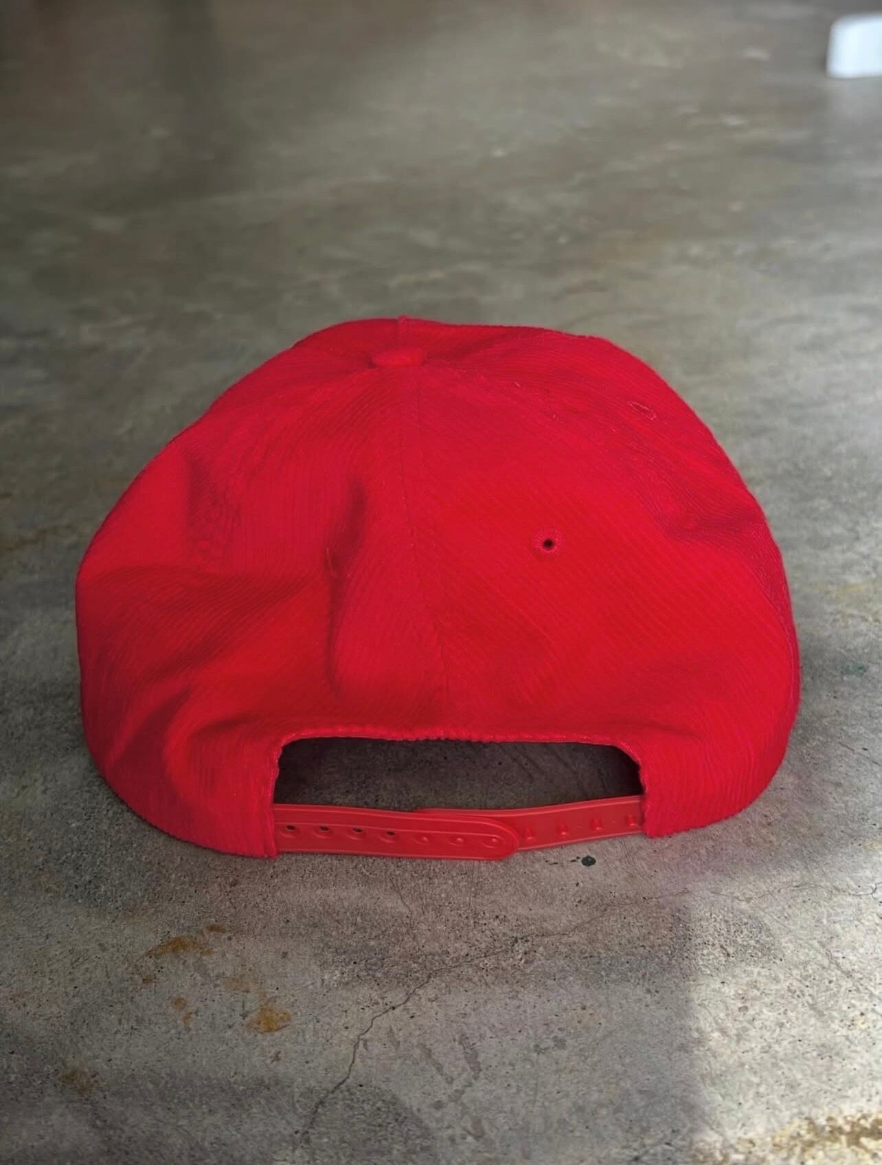 レッドボディ×ホワイト刺繍で存在感があり、ストリート・古着コーデに合わせやすい1点。