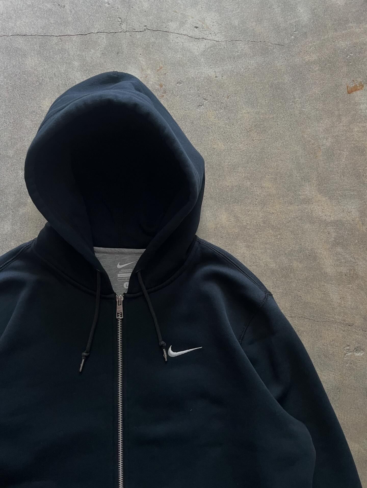 定番のブラックボディにワンポイントのスウッシュ刺繍。シンプルで合わせやすく、ストリート〜スポーツミックスまで幅広く使える1枚です。フルジップなので羽織りや体温調節もしやすく、デイリーに活躍します。