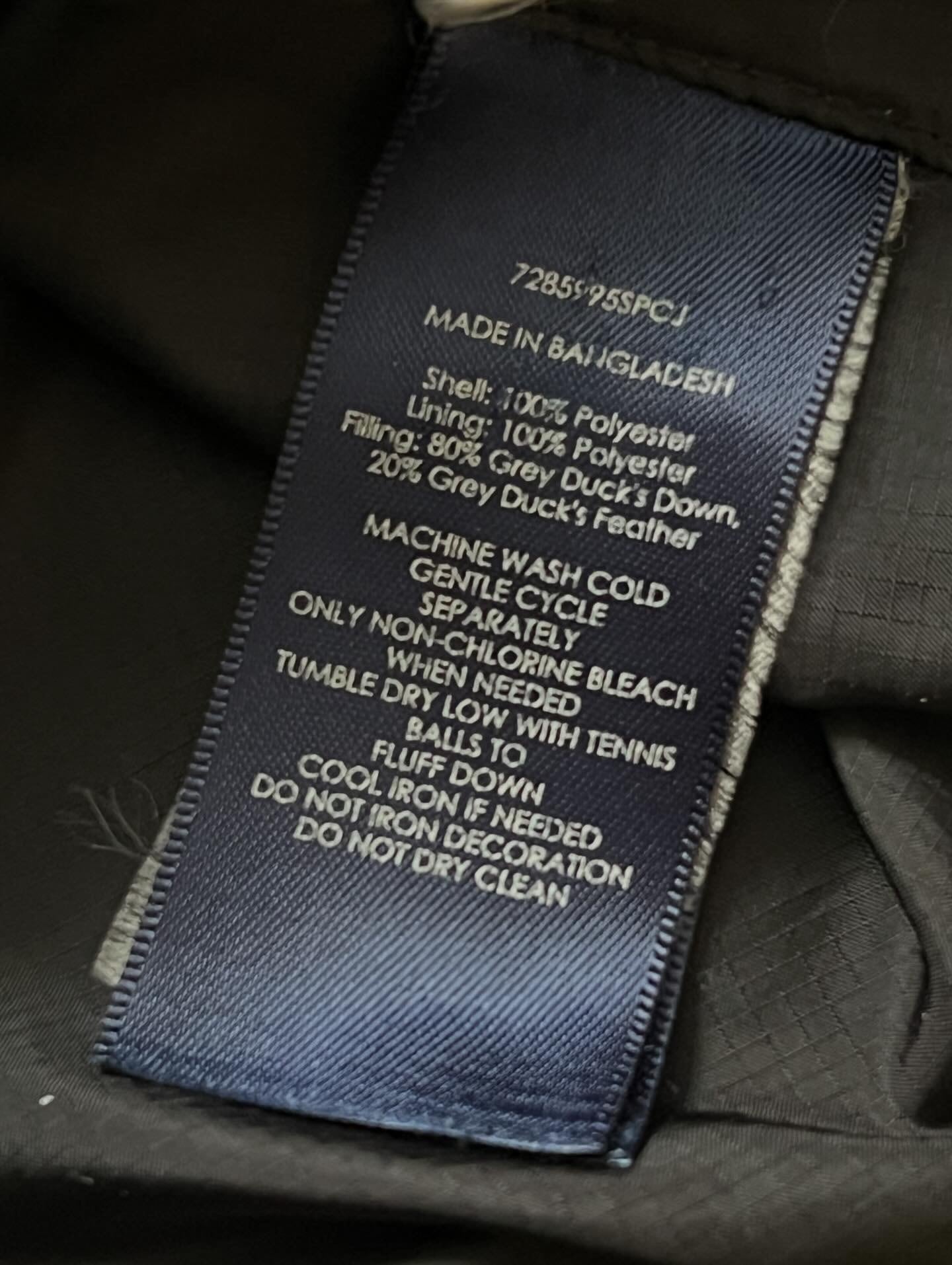 中綿:ダウン 80% / フェザー 20%(グレーダック)
