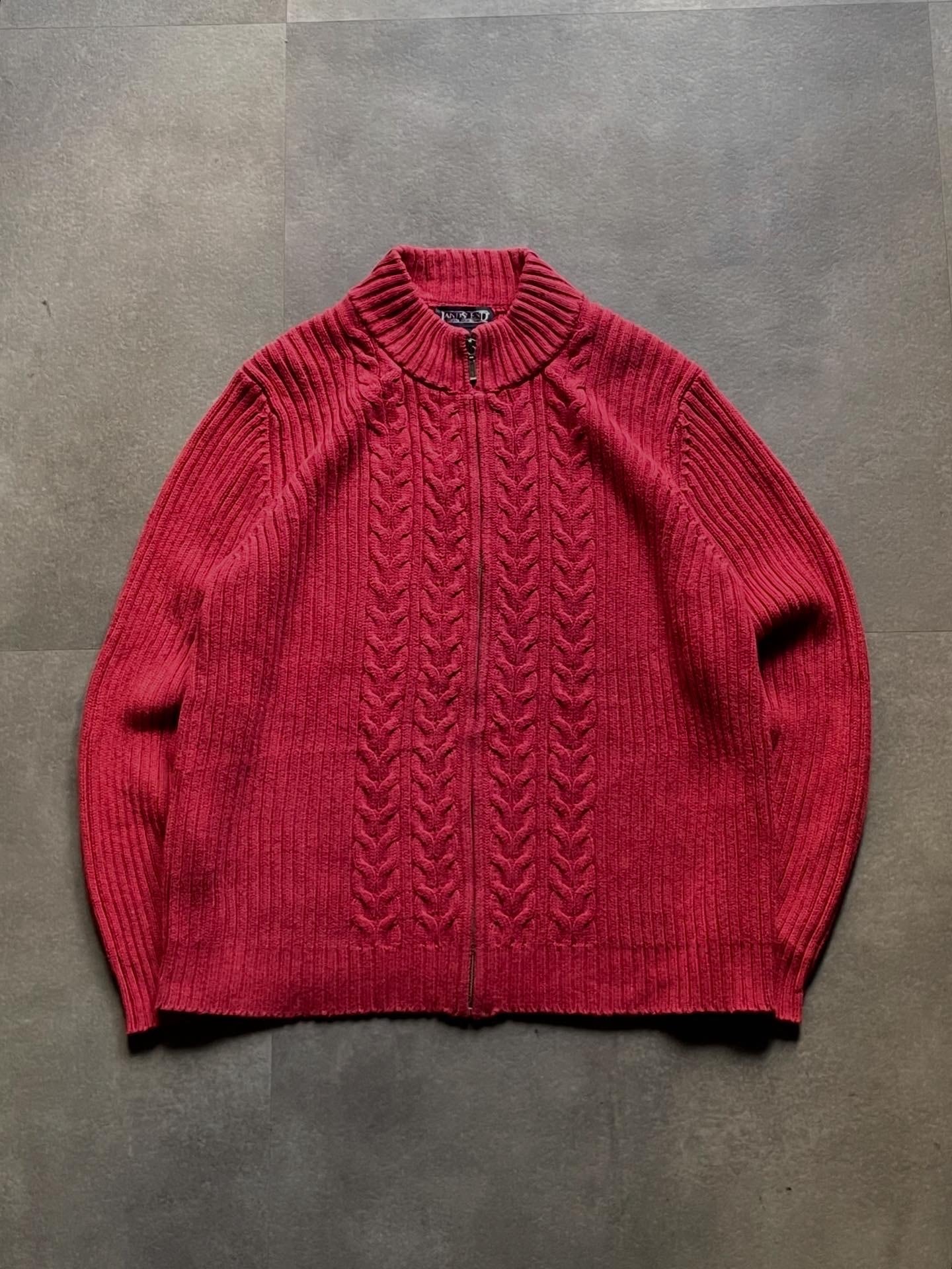 LANDS’ END ランズエンド ハーフジップ ケーブルニット セーター 赤 L