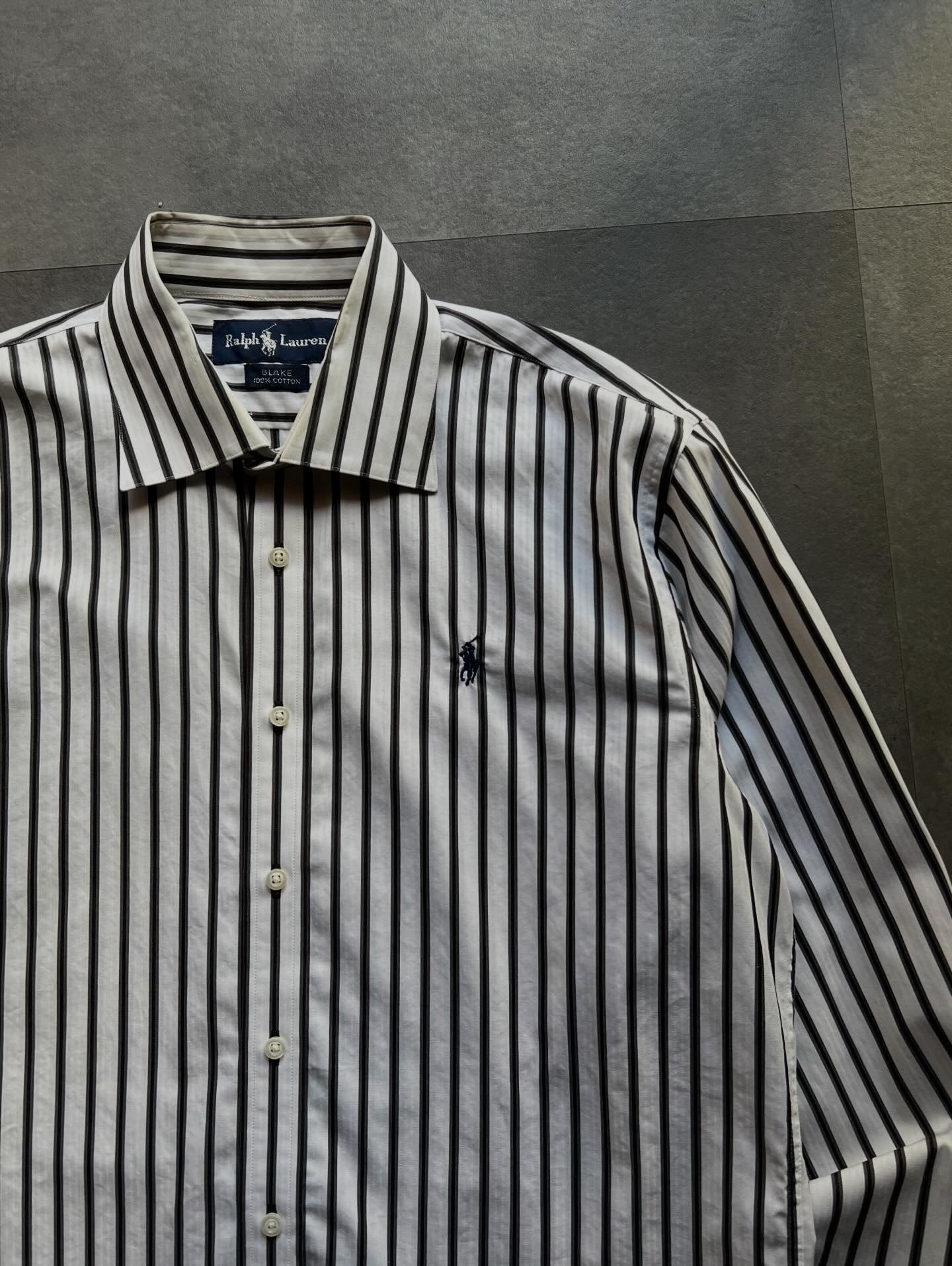 Ralph Lauren BLACK ラルフローレン ストライプシャツ コットン 白 黒