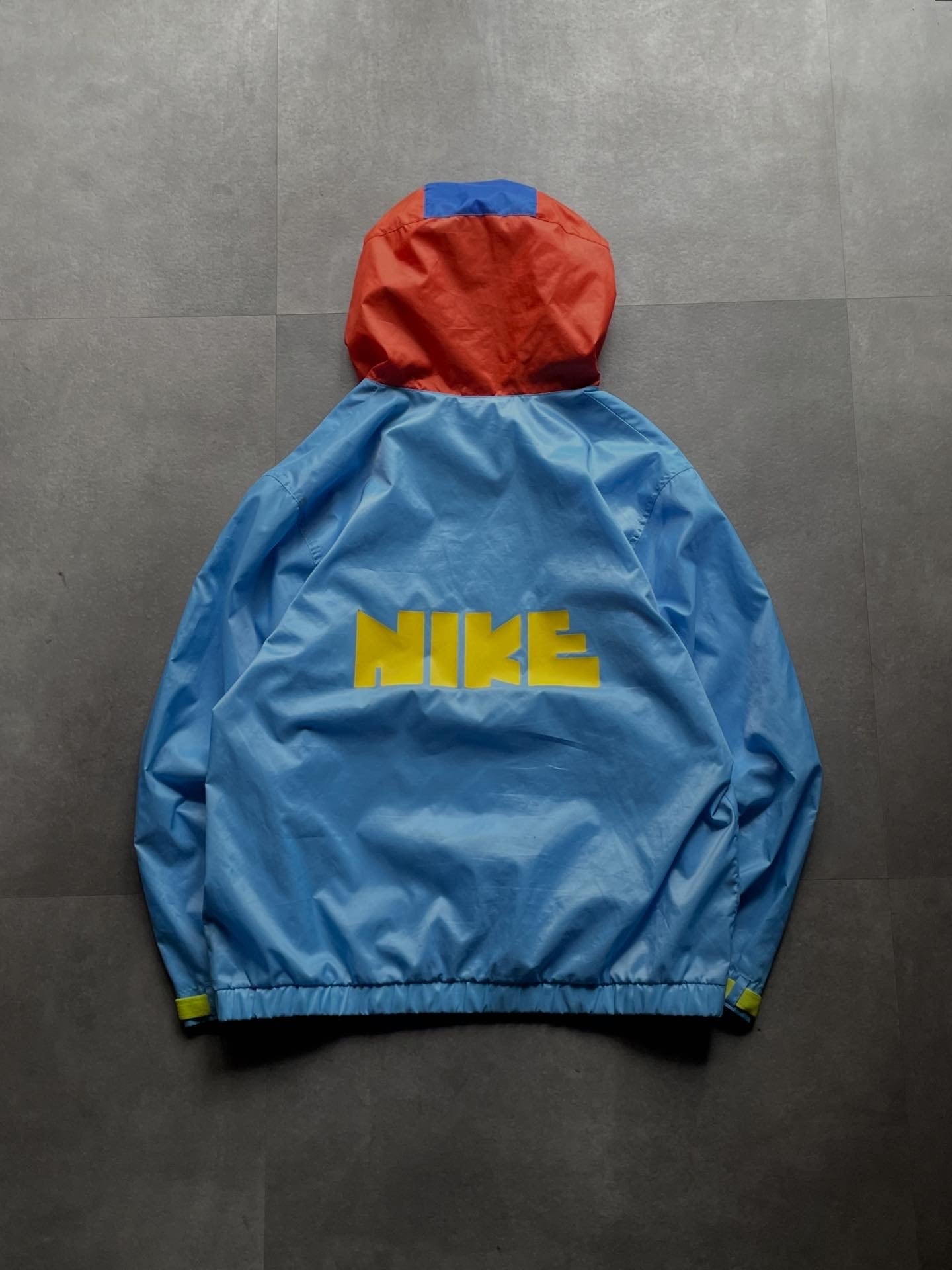 鮮やかなライトブルーをベースに、レッドとブルーの切替が映えるNIKEのアノラックジャケットです。