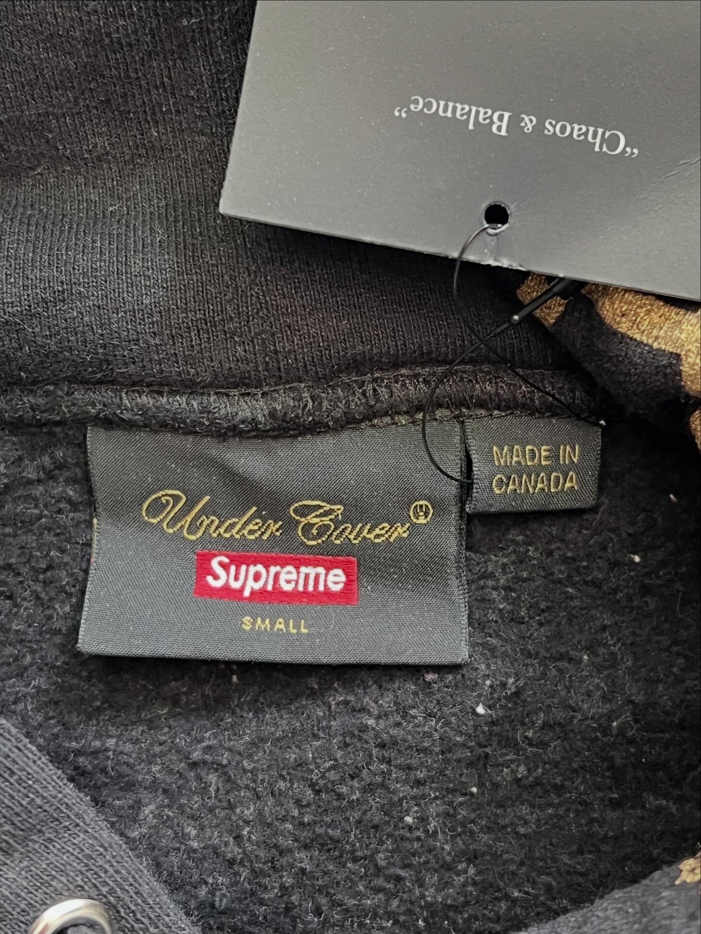 タグ画像ではUNDERCOVER / Supreme表記、サイズS、C.BLACK、コットン100%、MADE IN CANADA
