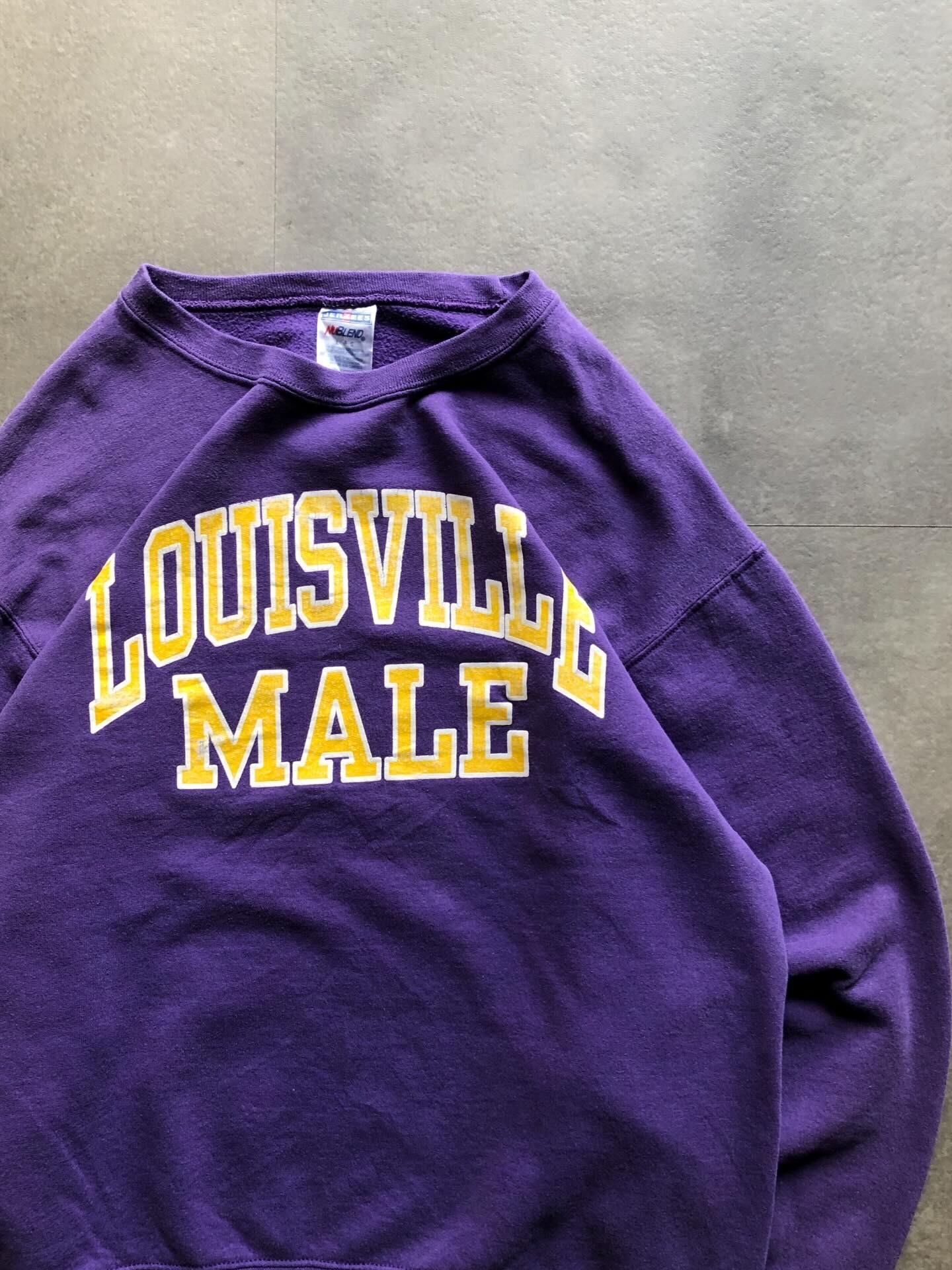 深みのあるパープルボディに、フロントの「LOUISVILLE MALE」プリントがしっかり映える、存在感のある1着です。