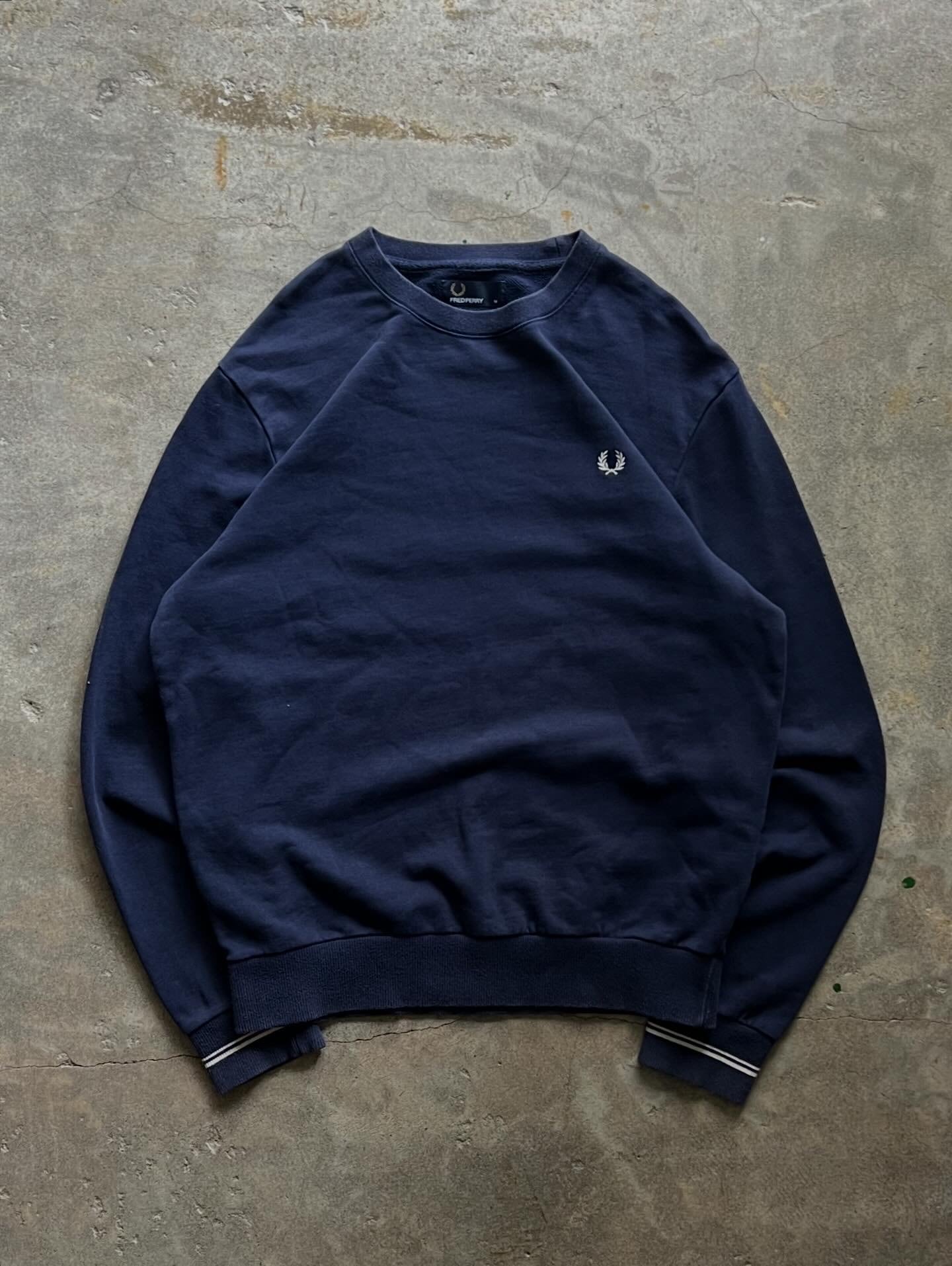 FRED PERRY ワンポイント ロゴスウェット クルーネック 紺 M