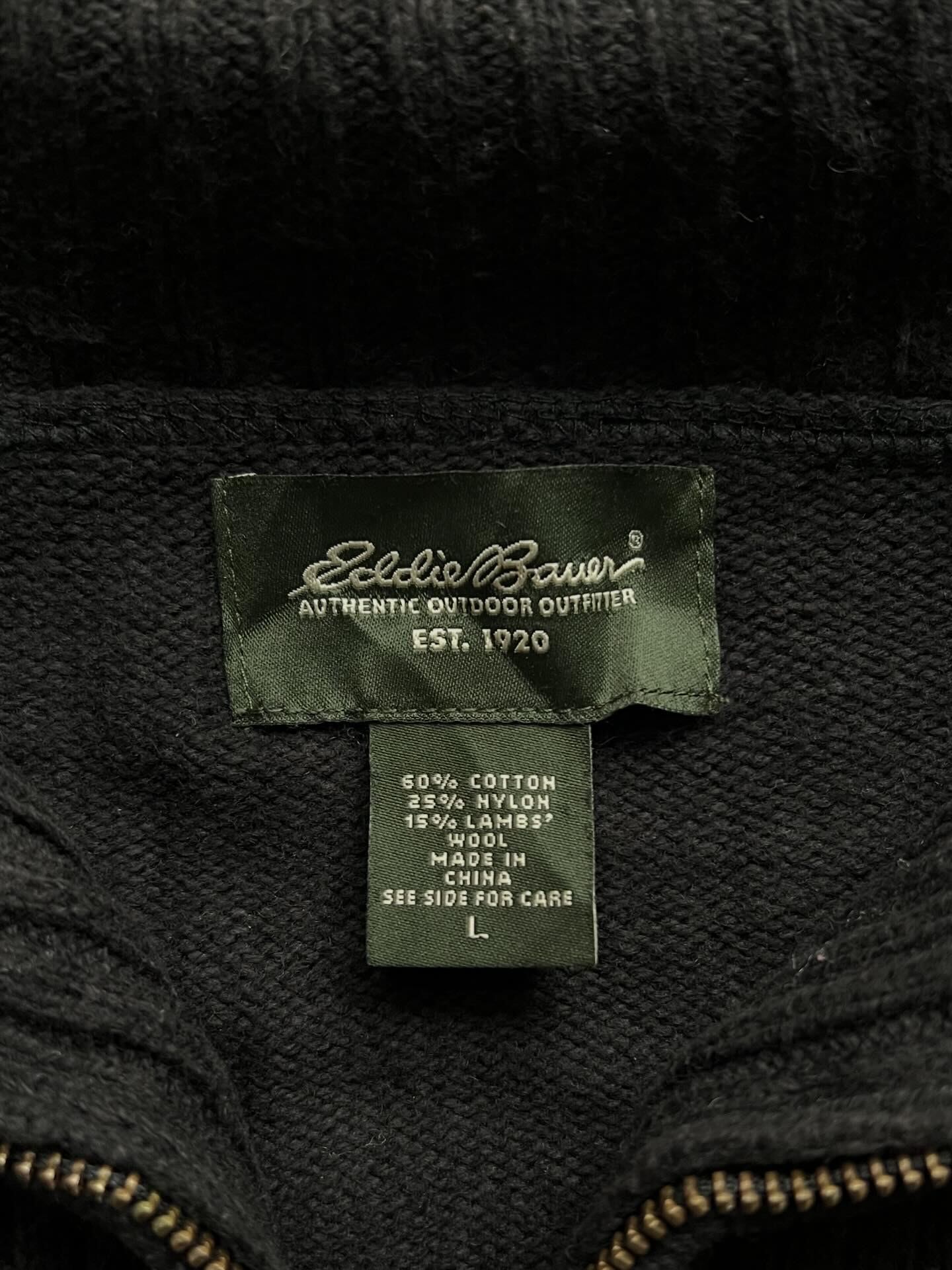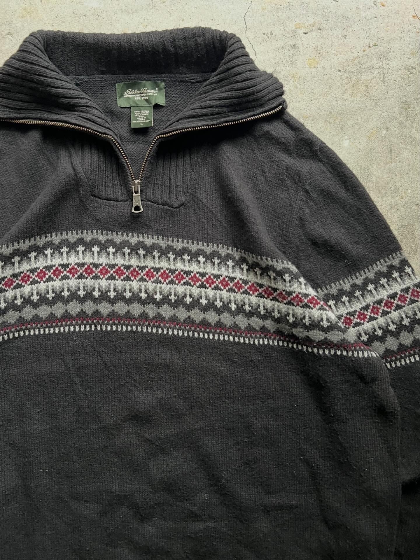 Eddie Bauer ハーフジップ ニット フェアアイル柄 ブラック L