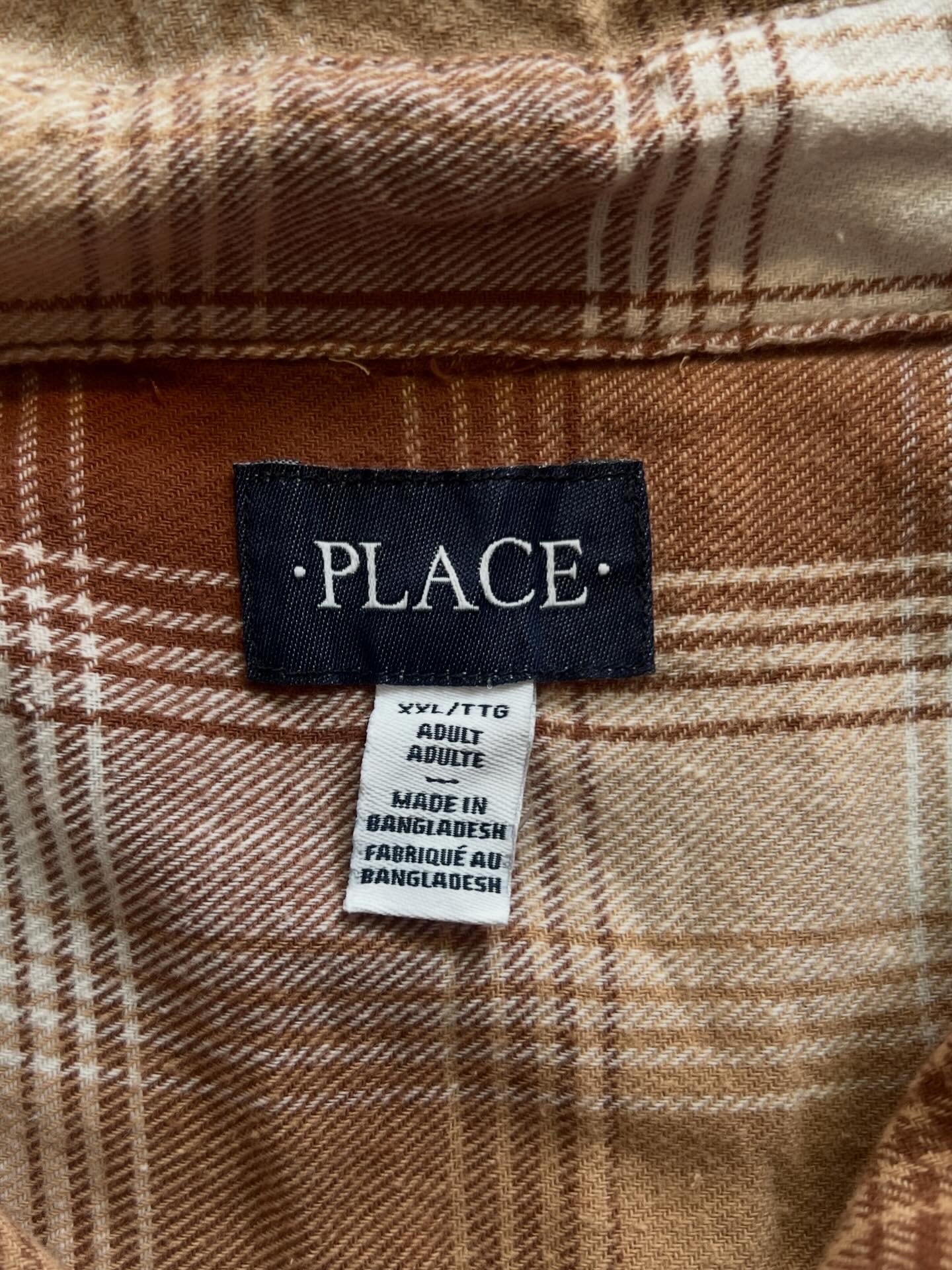 PLACE チェック 長袖シャツ ダブルポケット XXL/TTG 茶系