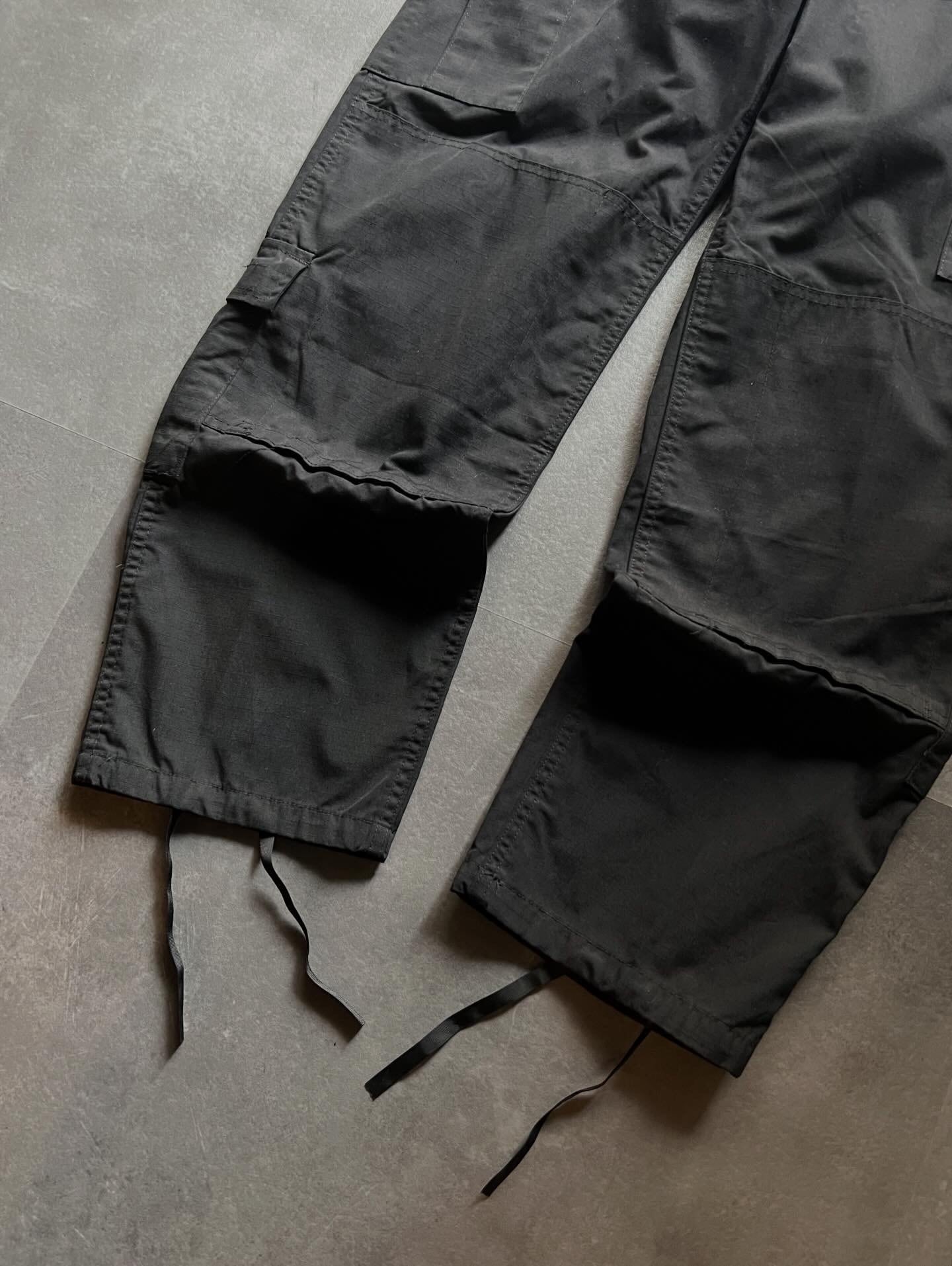 ミリタリー カーゴパンツ ブラック リップストップ SMALL-SHORT 裾ドローコード