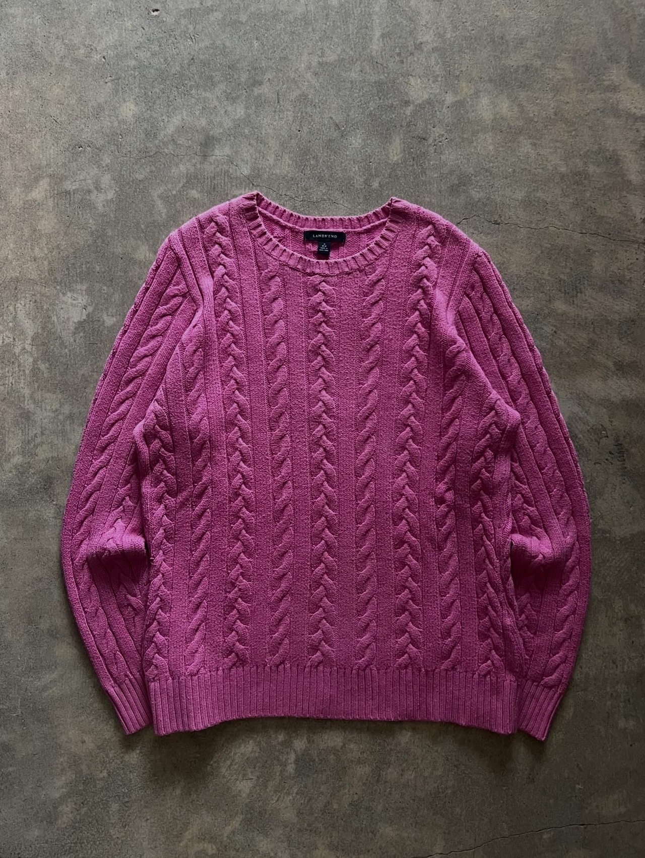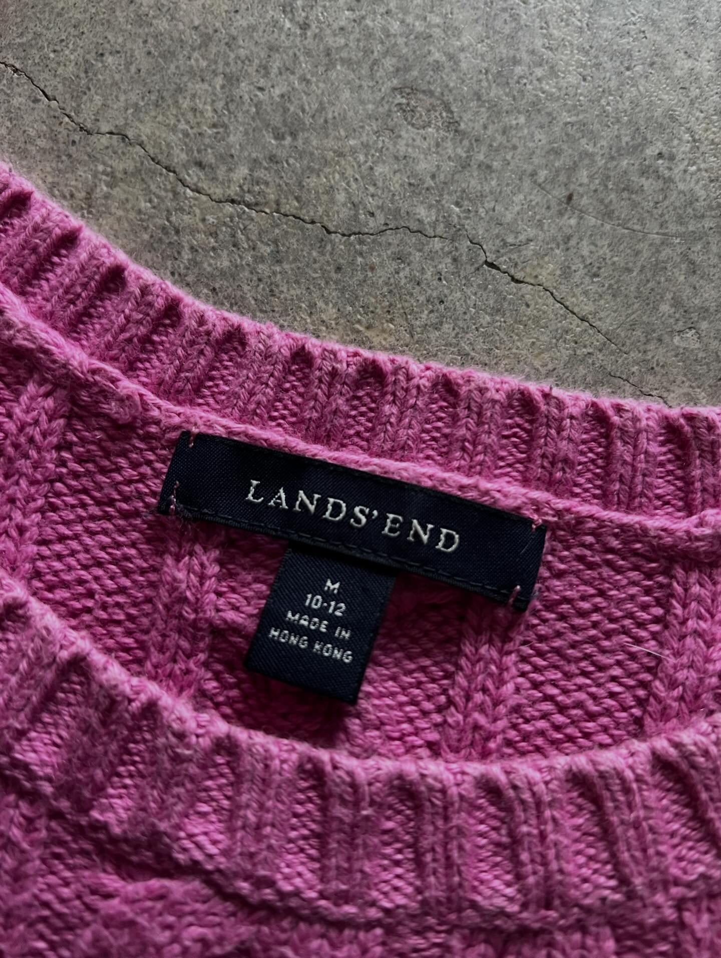 LANDS’ END ケーブル編み クルーネックニット ピンク M