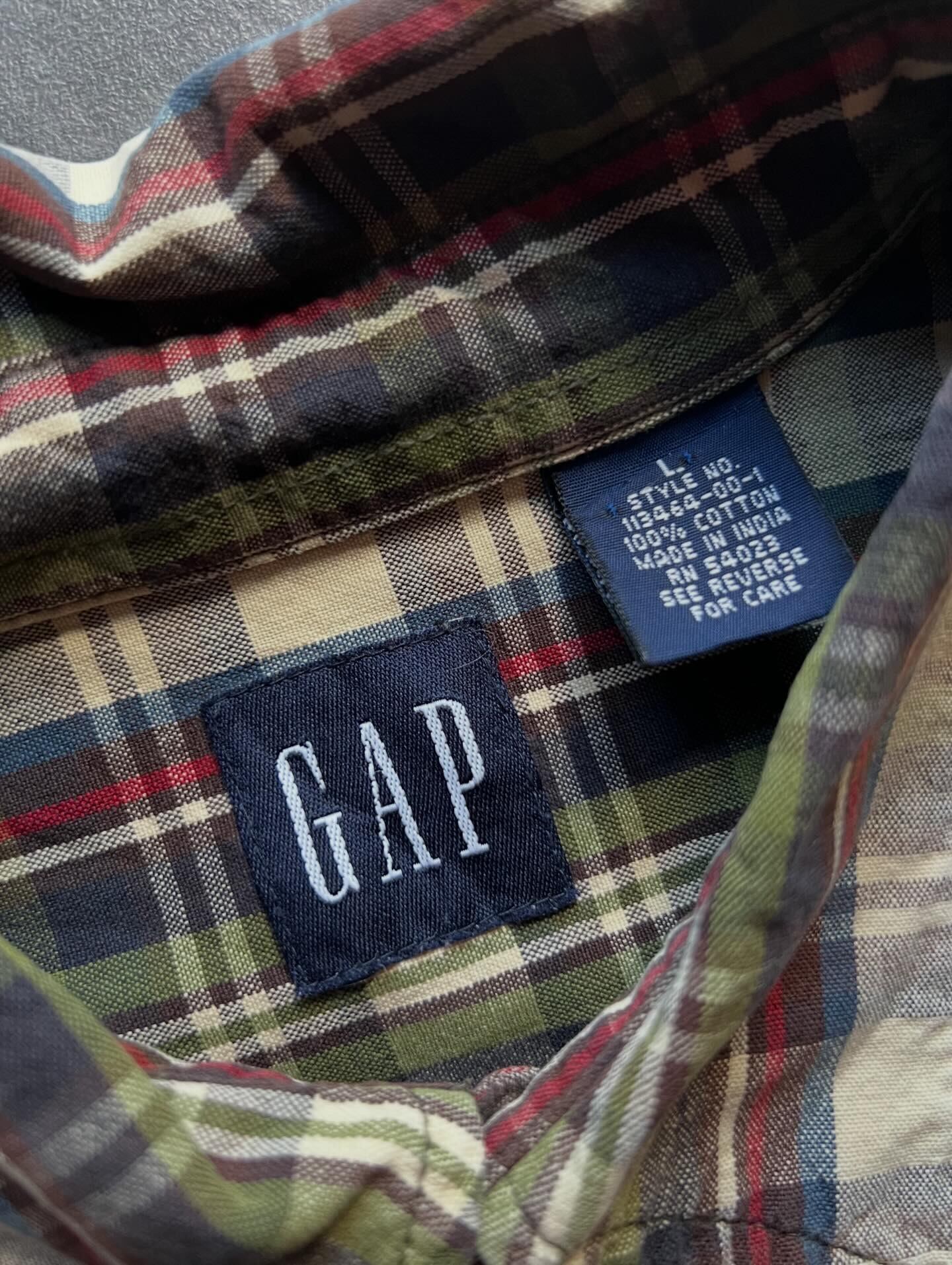GAP 半袖チェックシャツ L コットン100% マドラス調 インド製