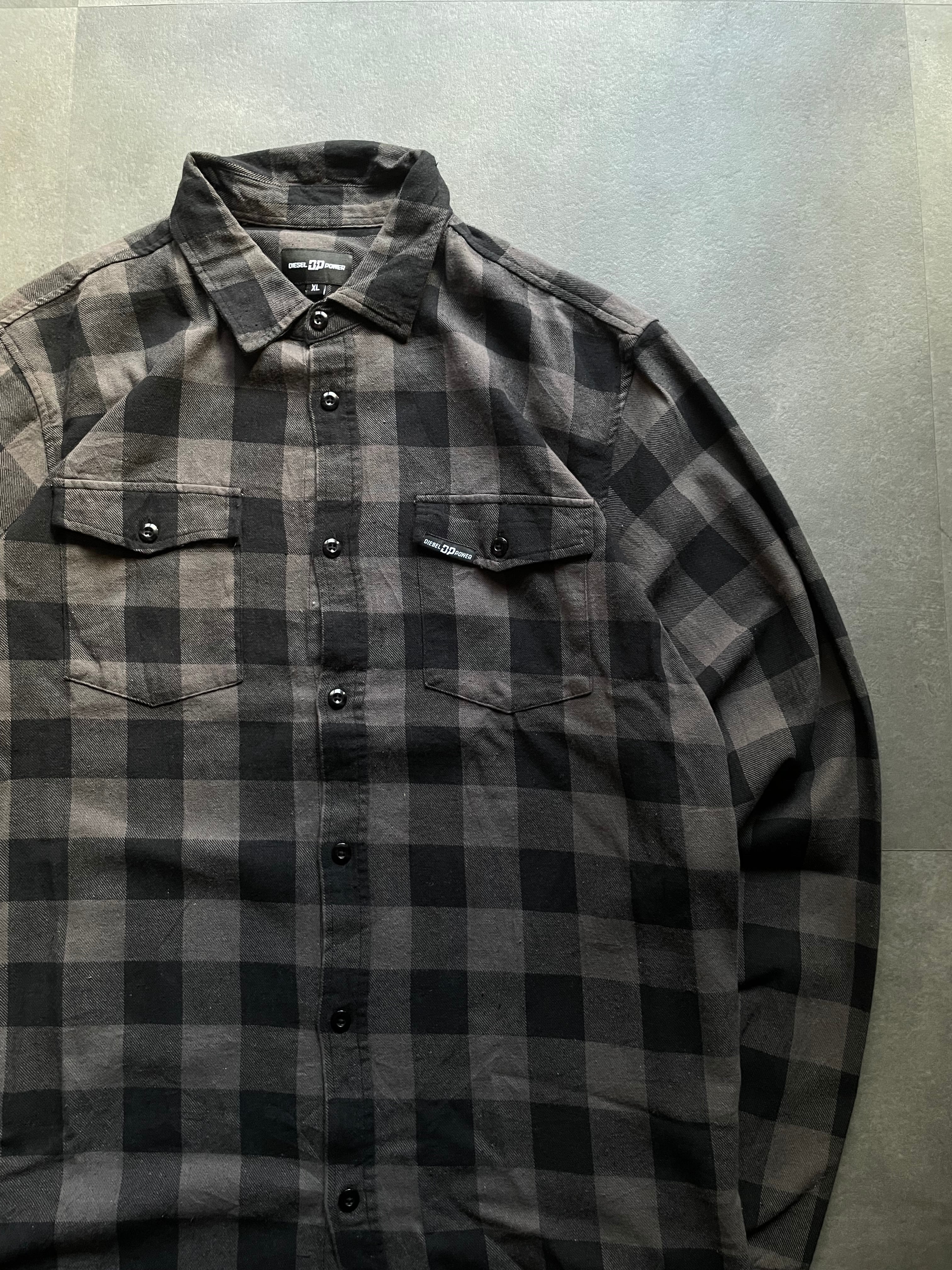 DIESEL ディーゼル ブロックチェック 長袖シャツ XL ブラック グレー