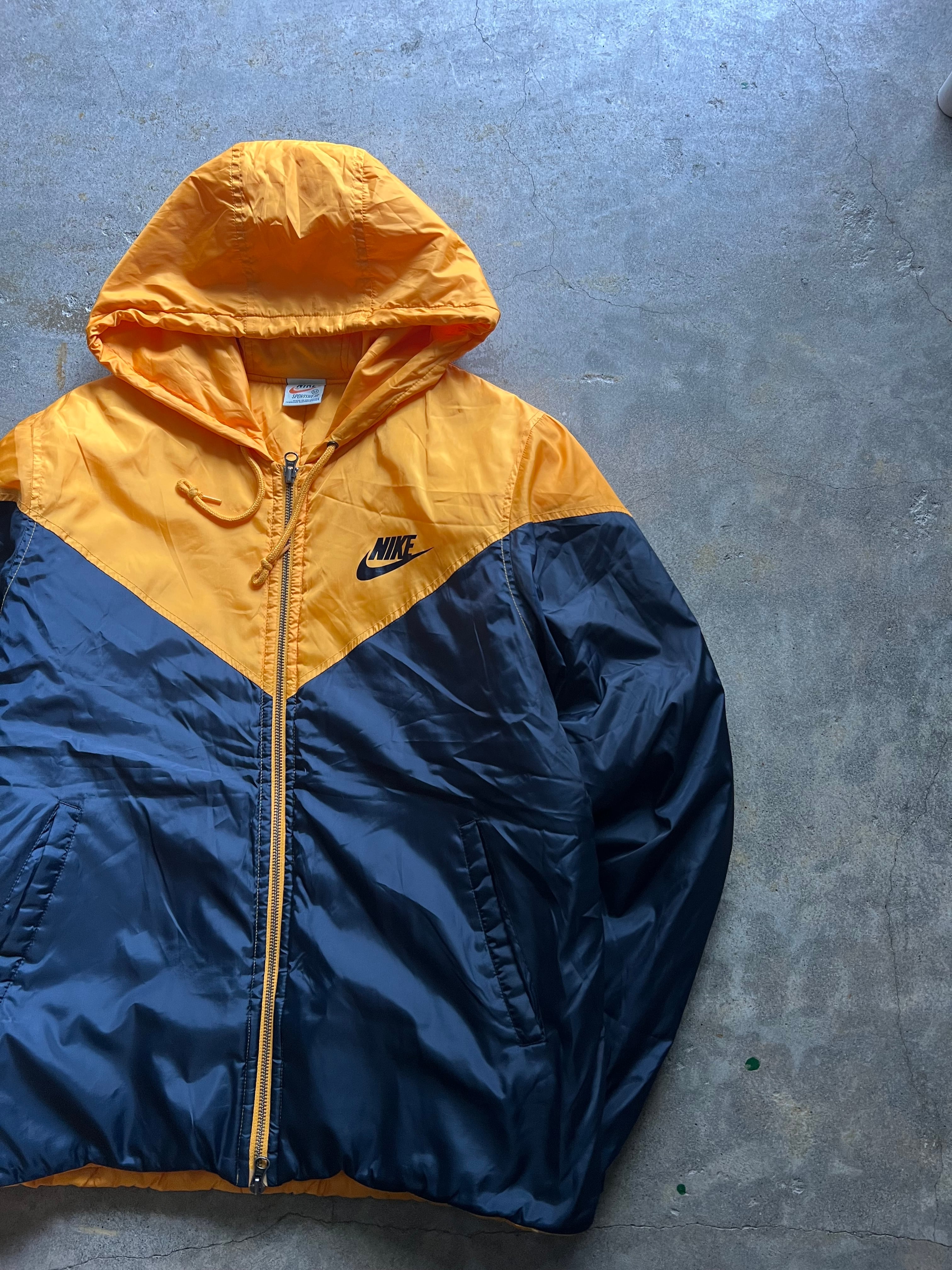 NIKE, ナイキ, Nike Sportswear, フーデッドジャケット, ジップアップジャケット, ウインドブレーカー, 切り替えデザイン, オレンジ, ネイビー, ストリート, フード付き, 古着