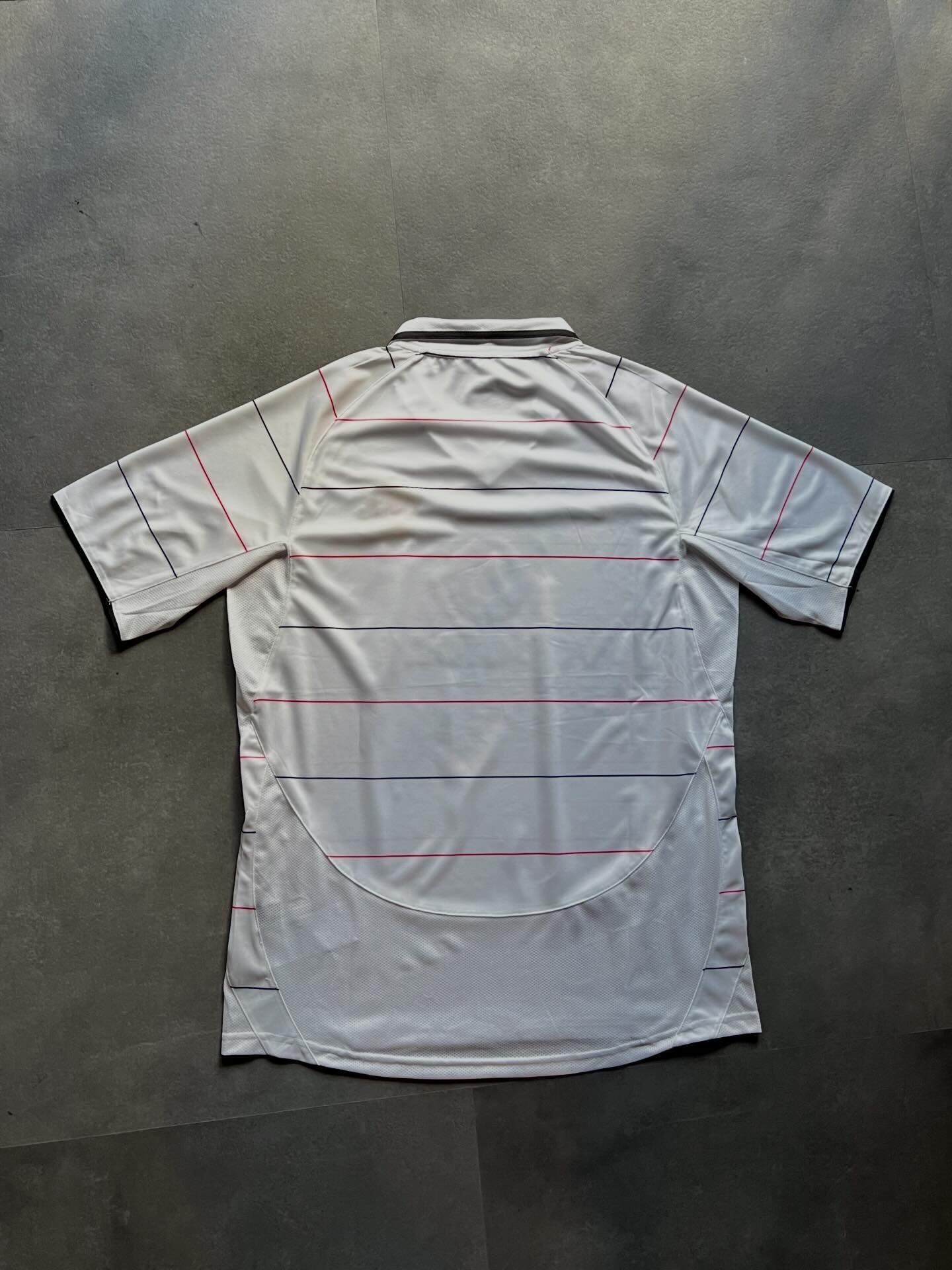 白ボディに細い赤・黒ラインが入る、マンチェスター・ユナイテッドのゲームシャツです。