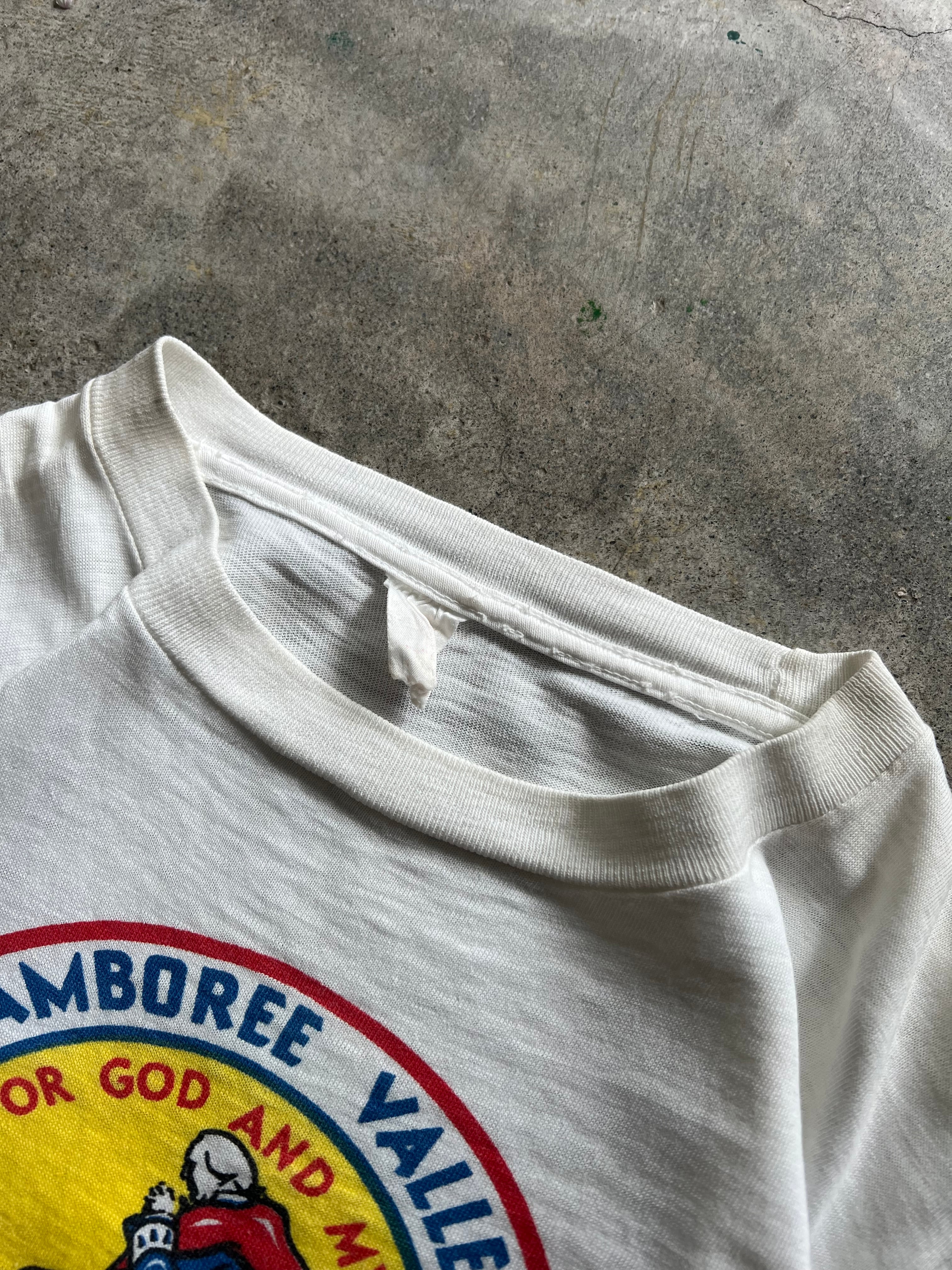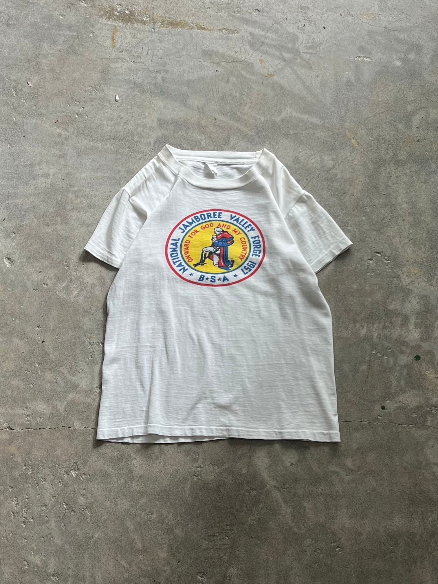 フロントに「NATIONAL JAMBOREE VALLEY FORGE 1957 / BSA」のプリントが入った半袖Tシャツです。