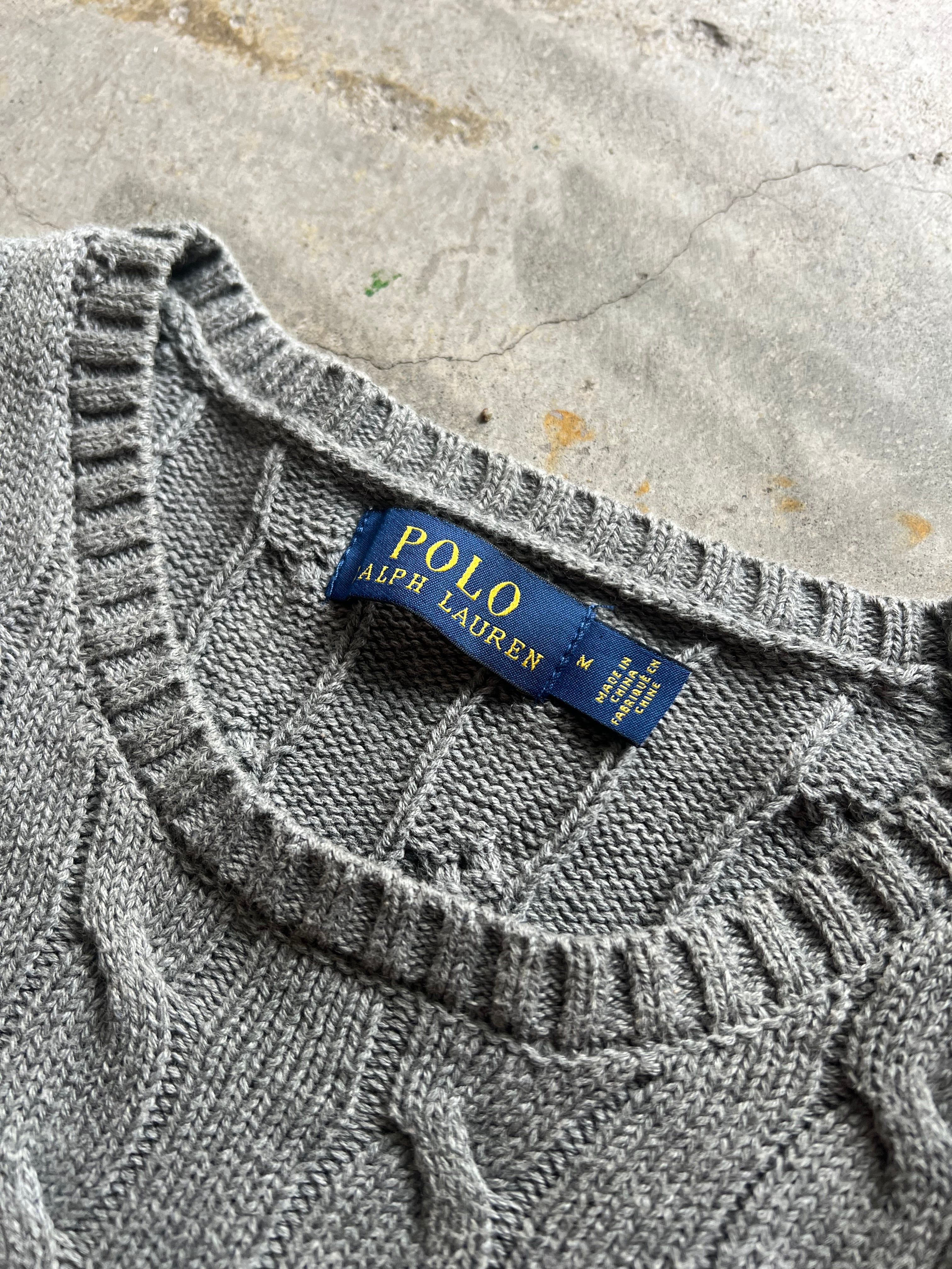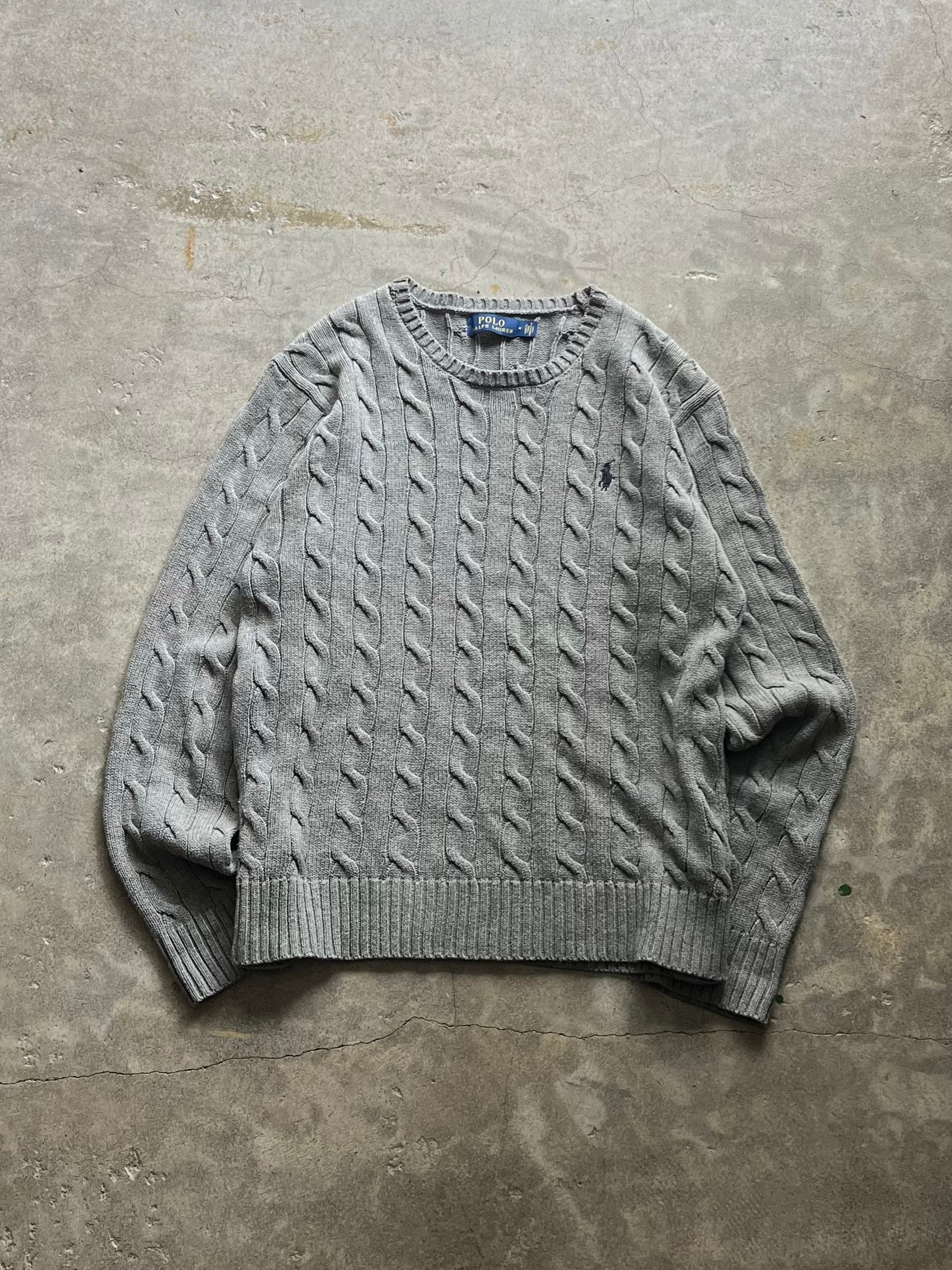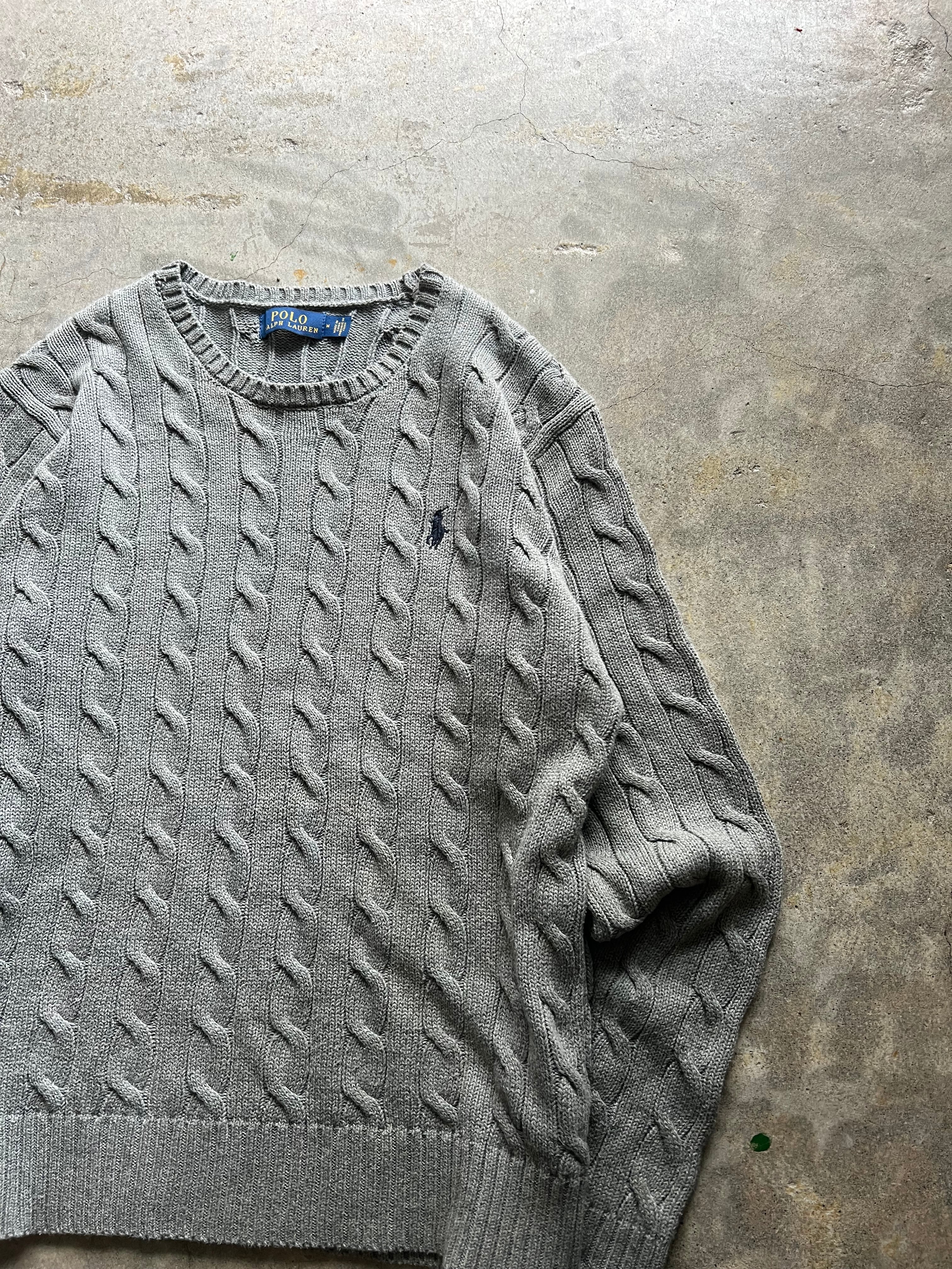 Polo Ralph Lauren, ポロラルフローレン, Ralph Lauren, ラルフローレン, ケーブルニット, ニットセーター, クルーネックニット, ポニー刺繍, グレーニット, Mサイズ, 定番ニット, 古着ニット