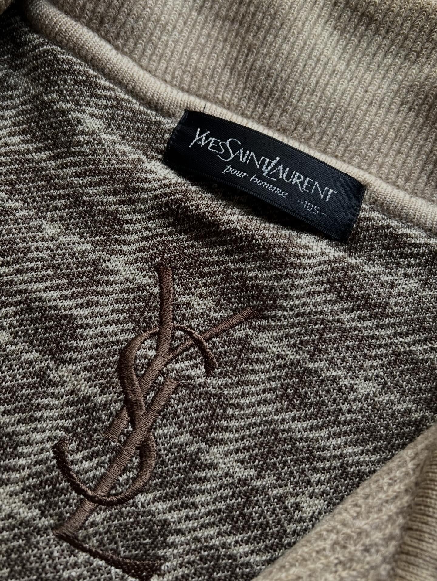 落ち着いたベージュ系カラーに、胸元のさりげないYSL刺繍が映えるYVES SAINT LAURENT pour hommeのニットブルゾンです。