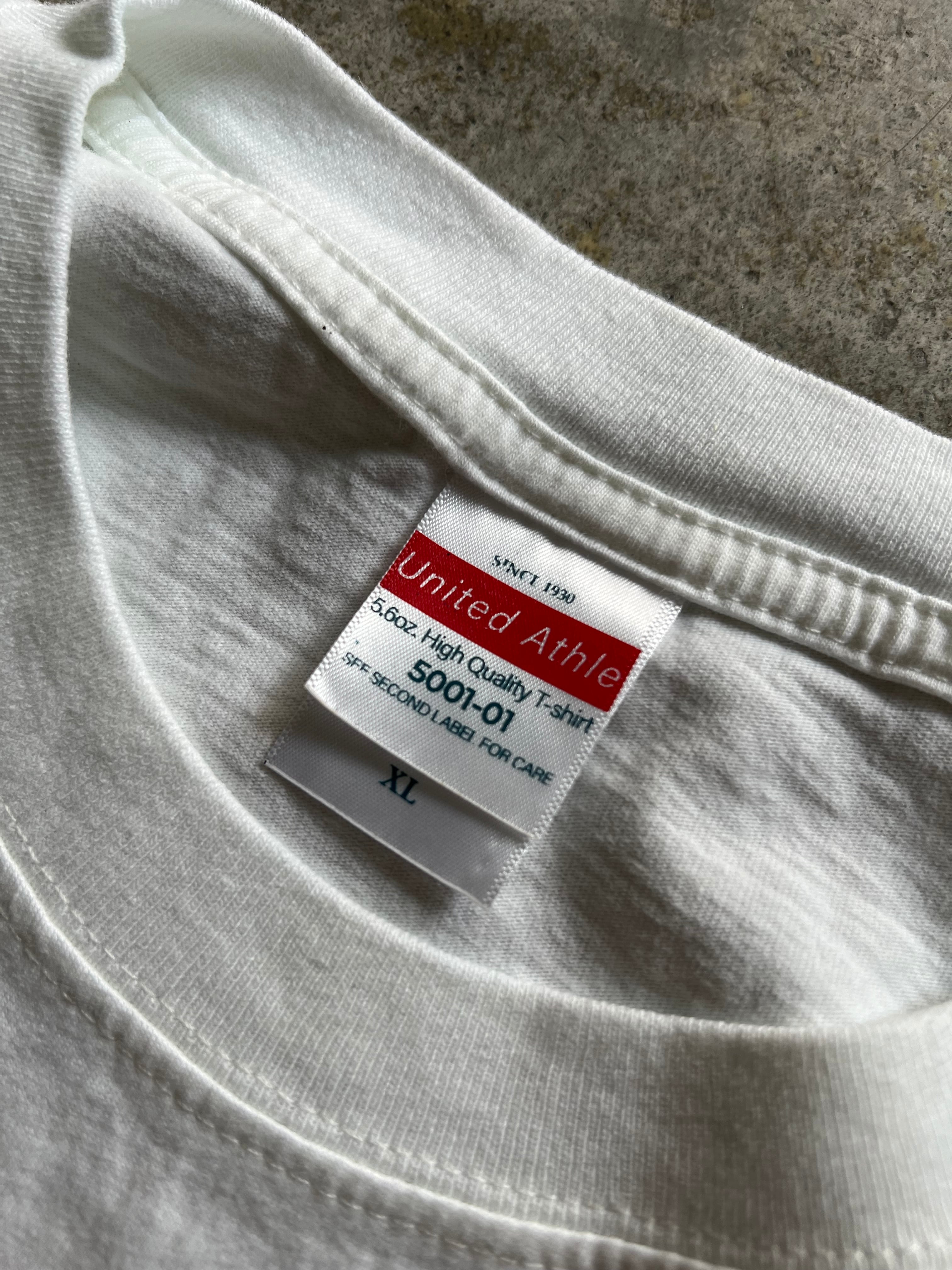 ボディはUnited Athleで、白ベースのためコーディネートに取り入れやすいのも魅力です。