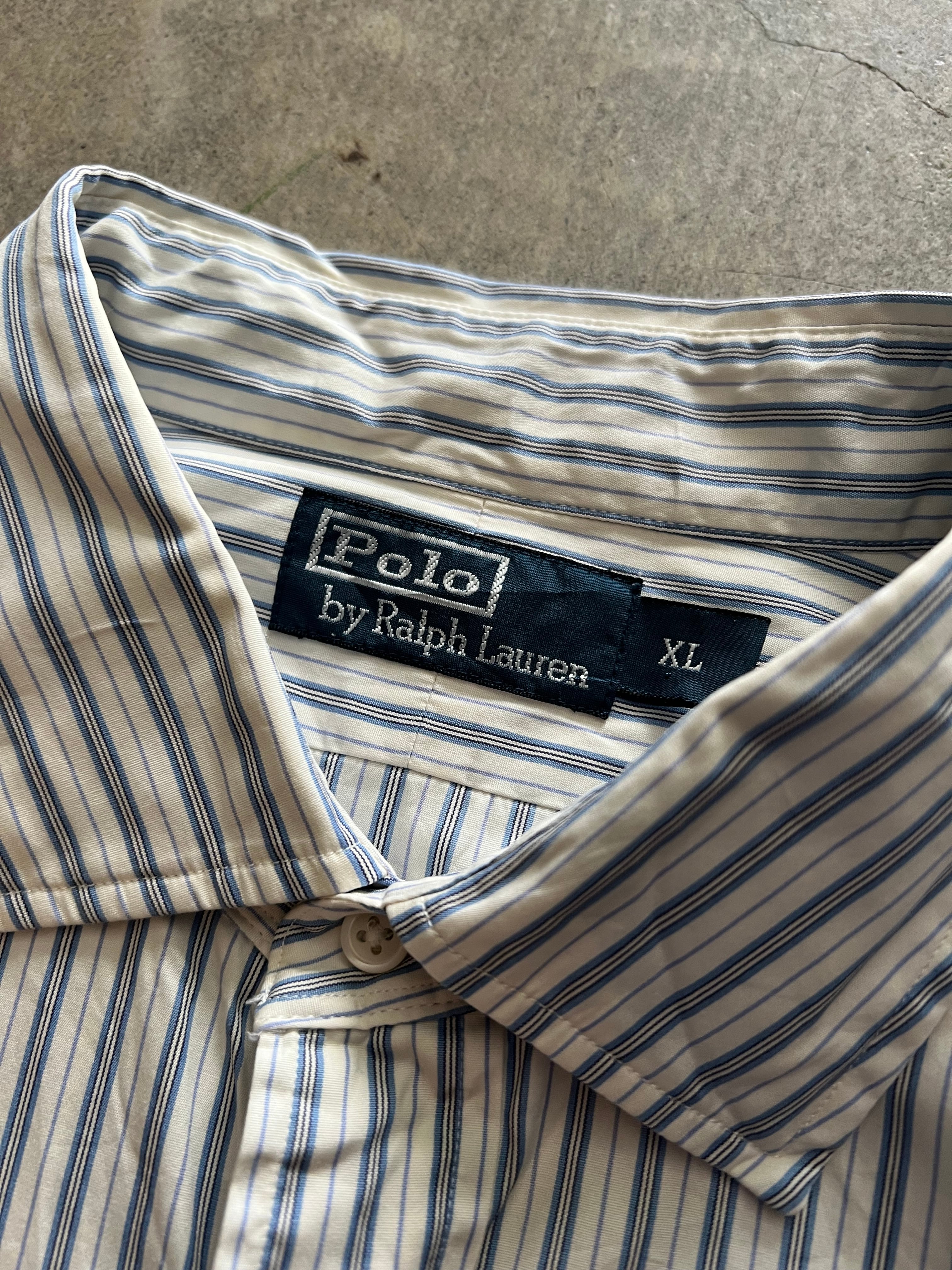 Polo by Ralph Lauren、ポロラルフローレン、ラルフローレン、長袖シャツ、ストライプシャツ、刺繍ロゴ、ポニー刺繍、XLシャツ、白系シャツ、きれいめ、アメカジ、メンズ古着