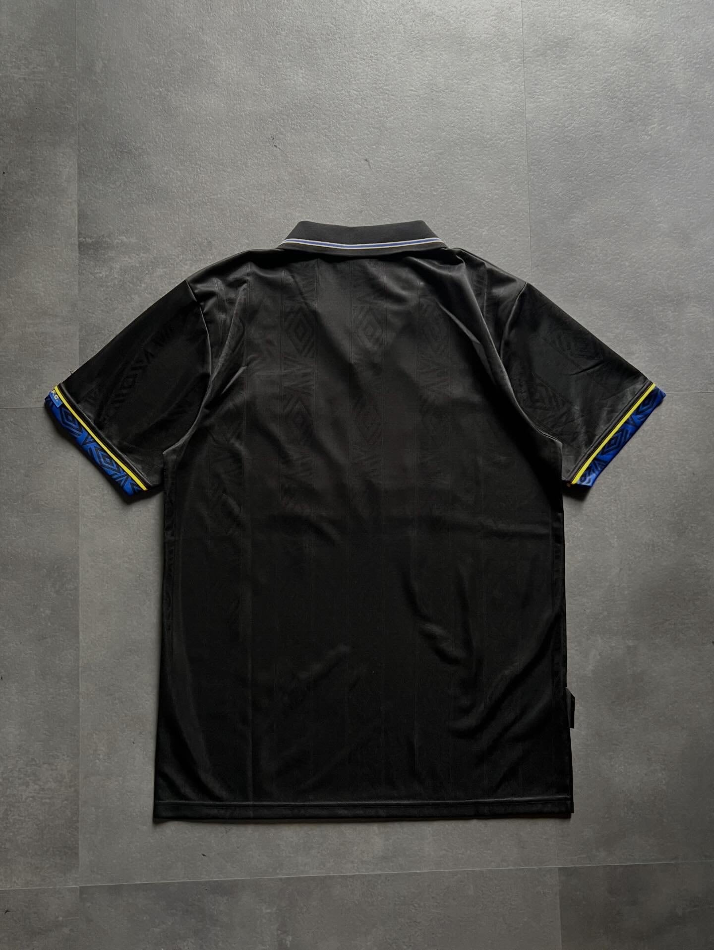 ブラックボディにイエローのSHARP VIEWCAM、胸のクラブエンブレム、UMBROロゴが映えるデザインで、クラシックなフットボールシャツらしい雰囲気をしっかり楽しめます。