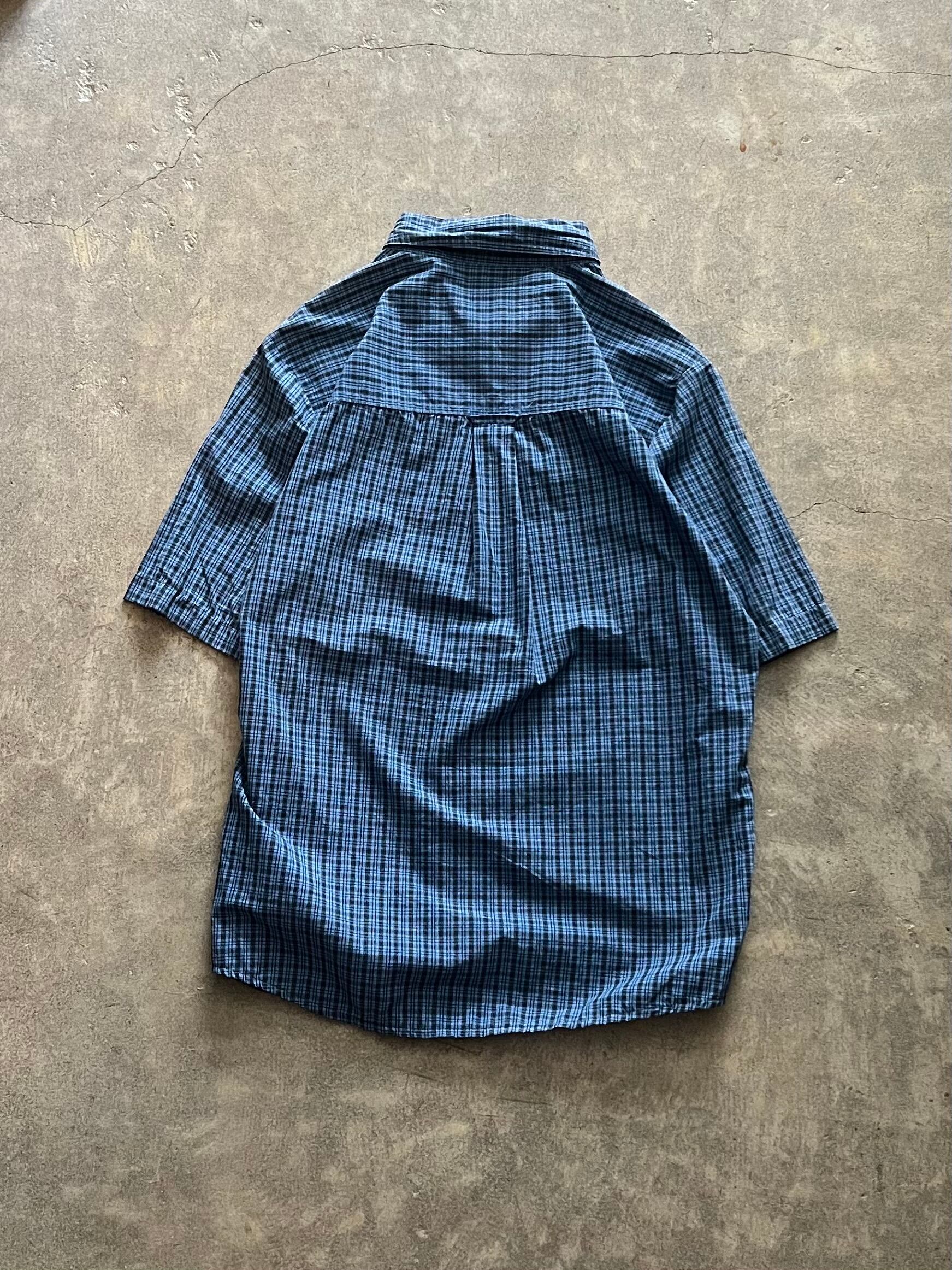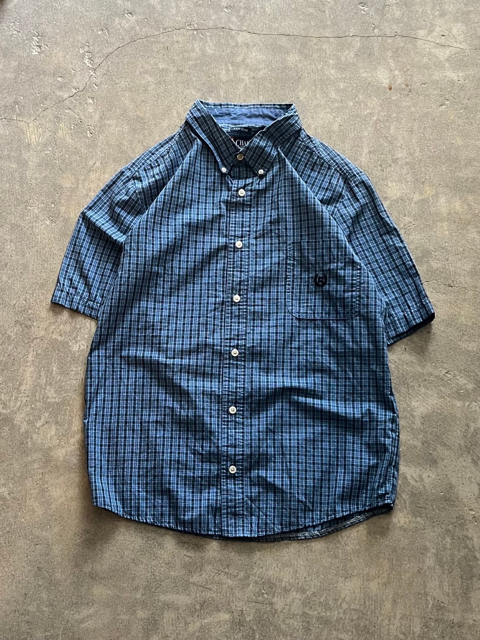 CHAPS、チャップス、半袖シャツ、ボタンダウンシャツ、チェックシャツ、ブルー系、ワンポイント刺繍、胸ポケット、メンズ古着、アメカジ