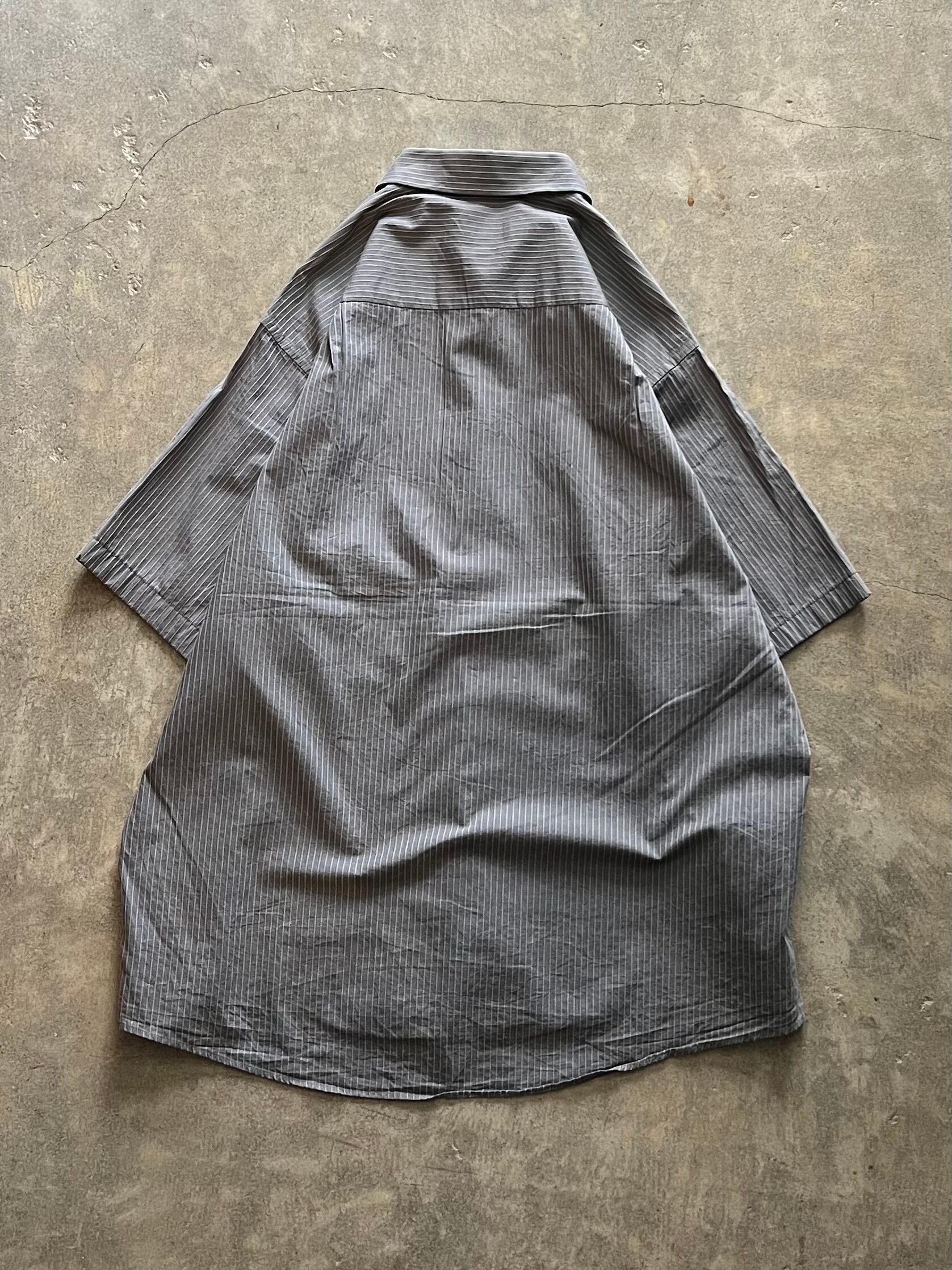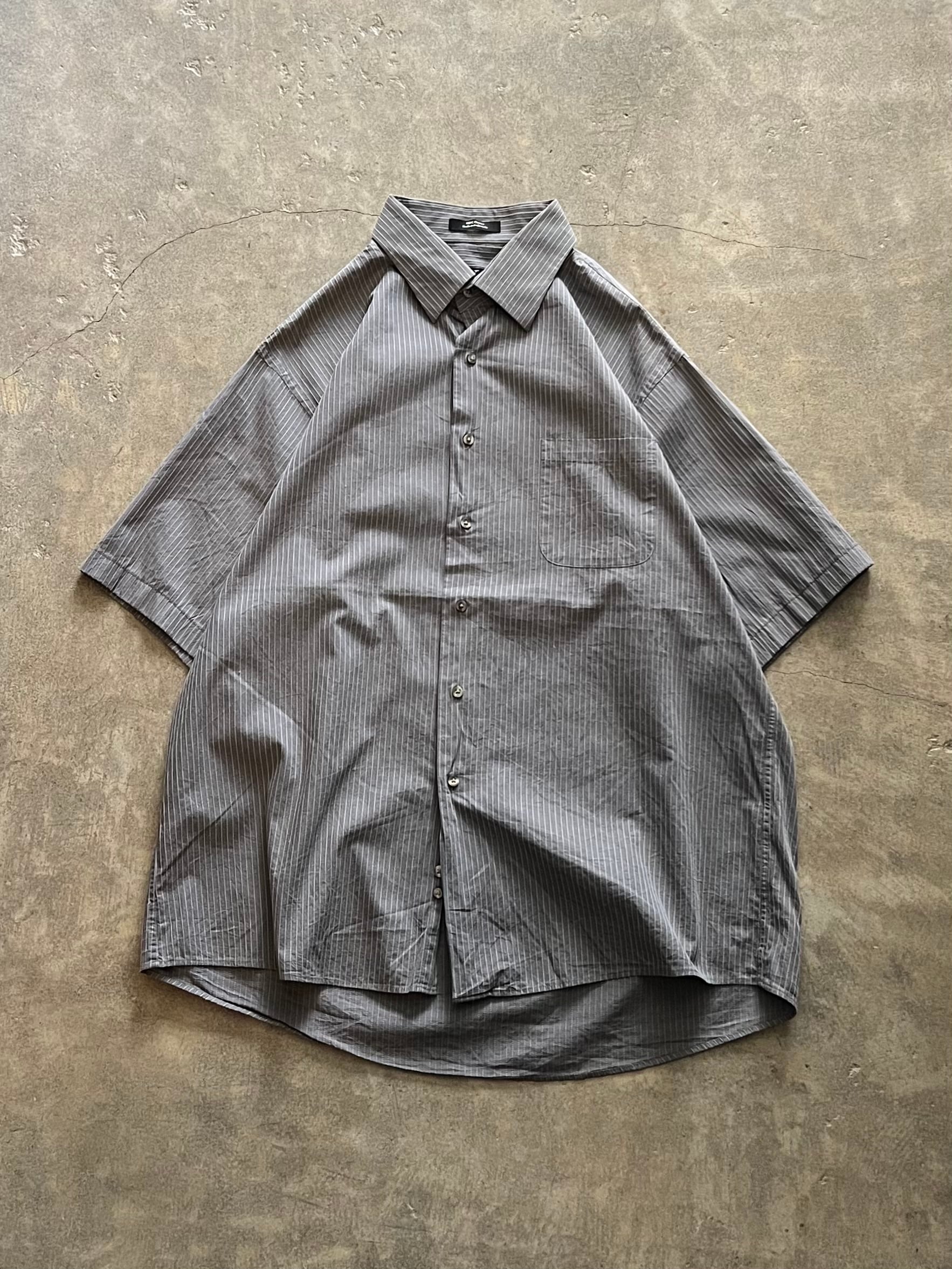 Calvin Klein Jeans、カルバンクラインジーンズ、Calvin Klein、カルバンクライン、半袖シャツ、ストライプシャツ、ピンストライプ、グレーシャツ、コットンシャツ、メンズ古着、胸ポケット、XL
