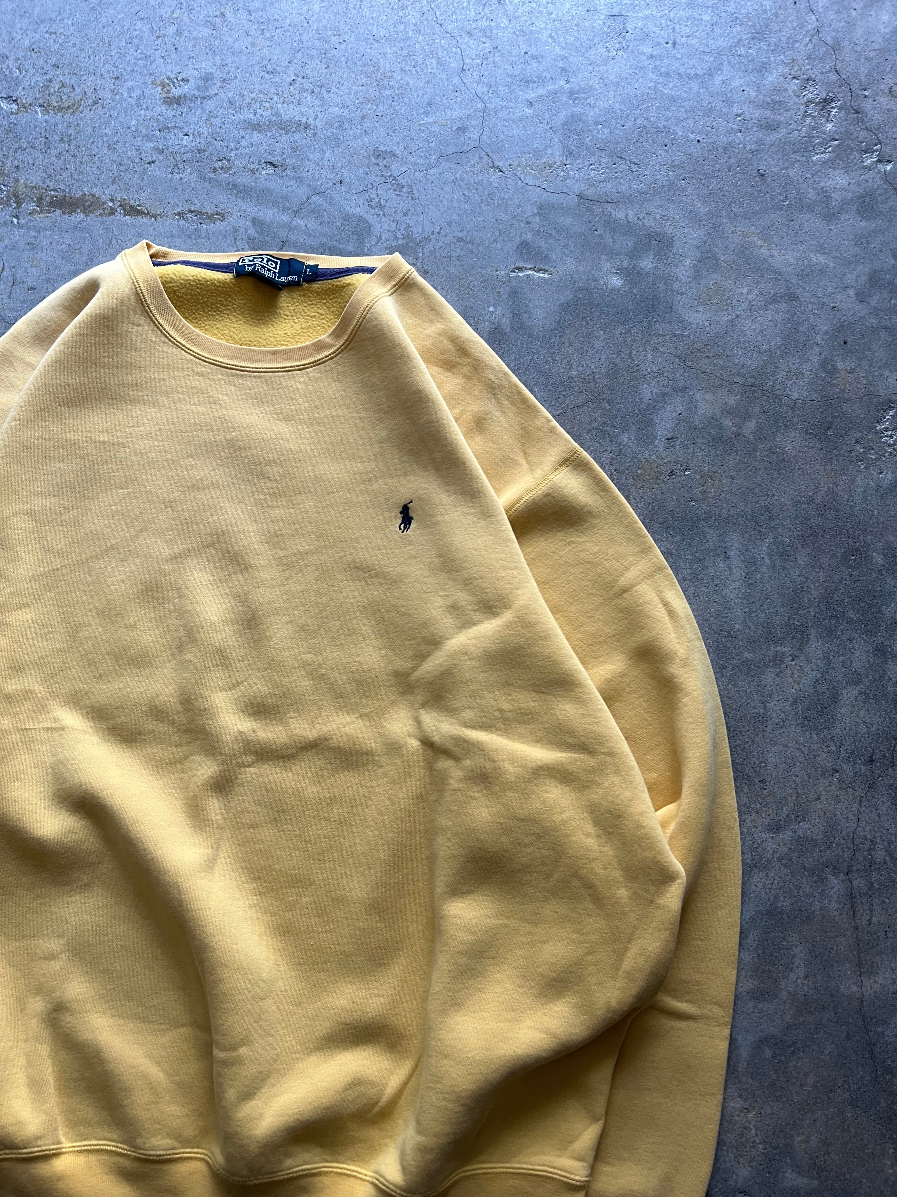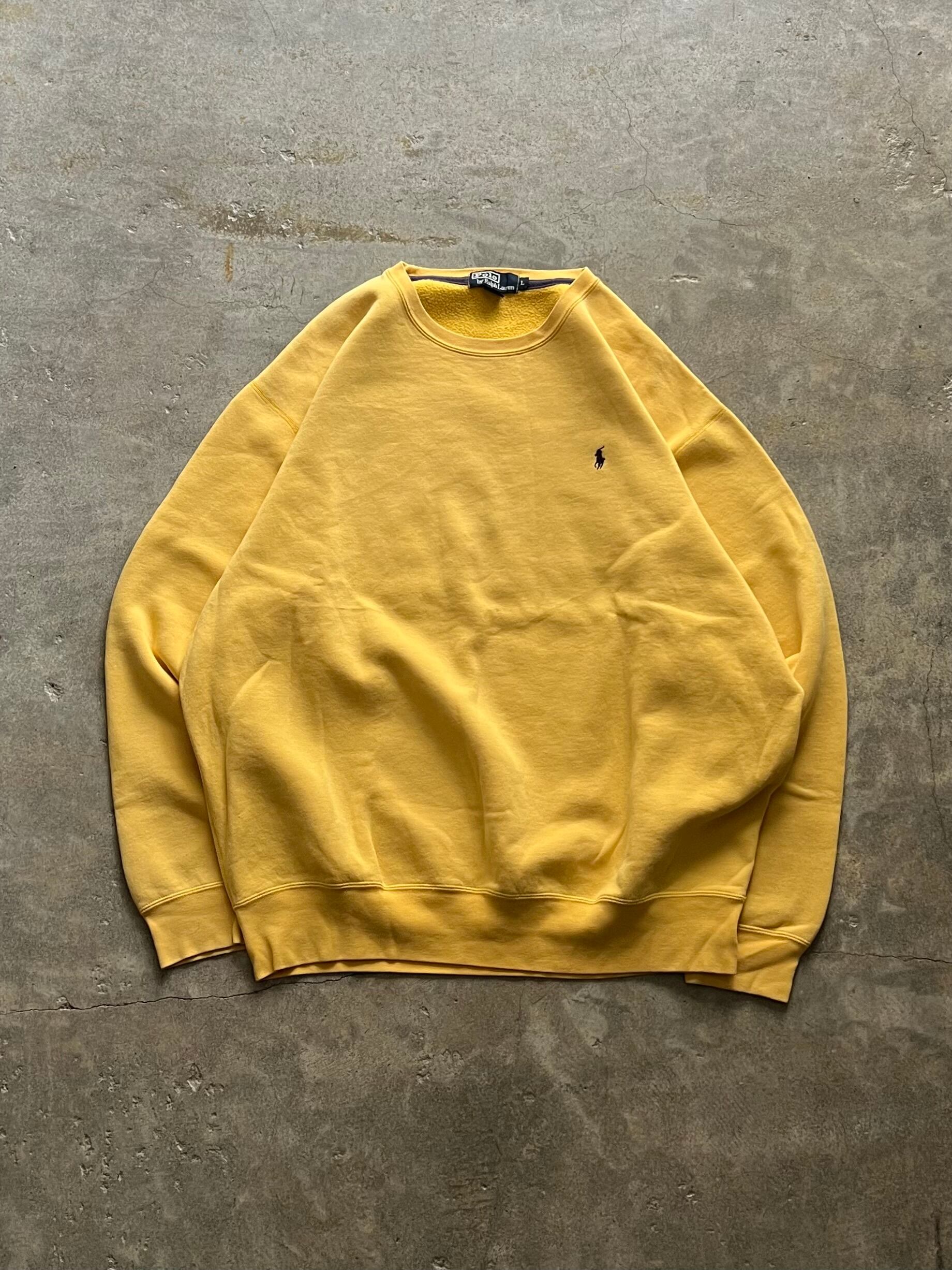 Polo by Ralph Lauren、Ralph Lauren、ポロラルフローレン、ラルフローレン、クルーネックスウェット、スウェット、ワンポイント、ポニー刺繍、イエロー、マスタード、Lサイズ、裏起毛