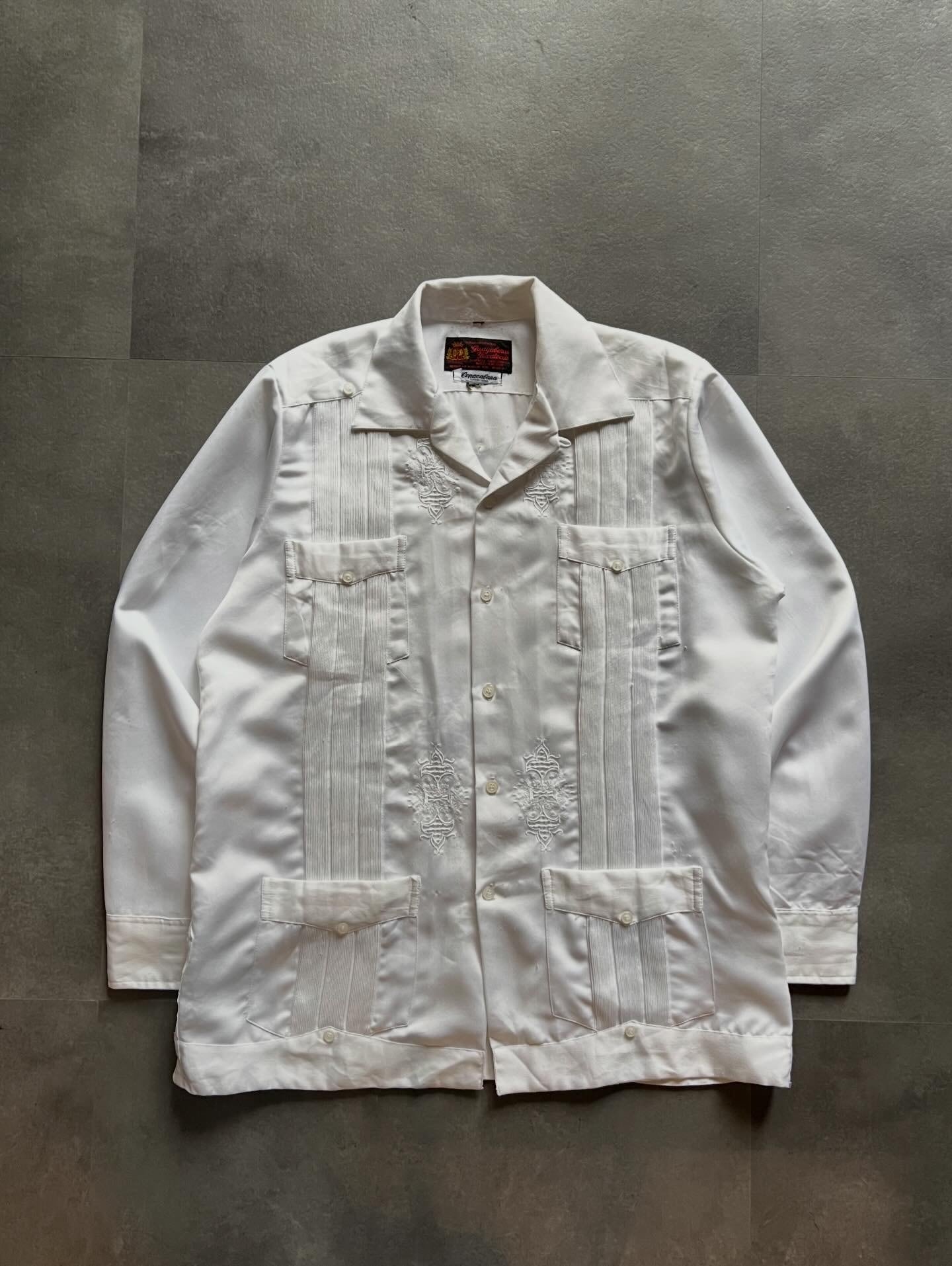 Copacabana キューバシャツ グアヤベラ 長袖 刺繍 4ポケット 白
