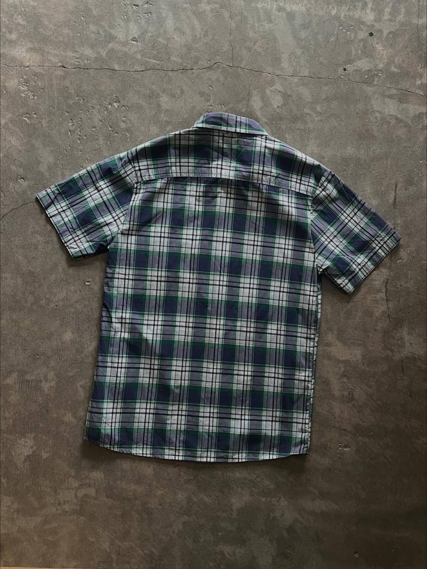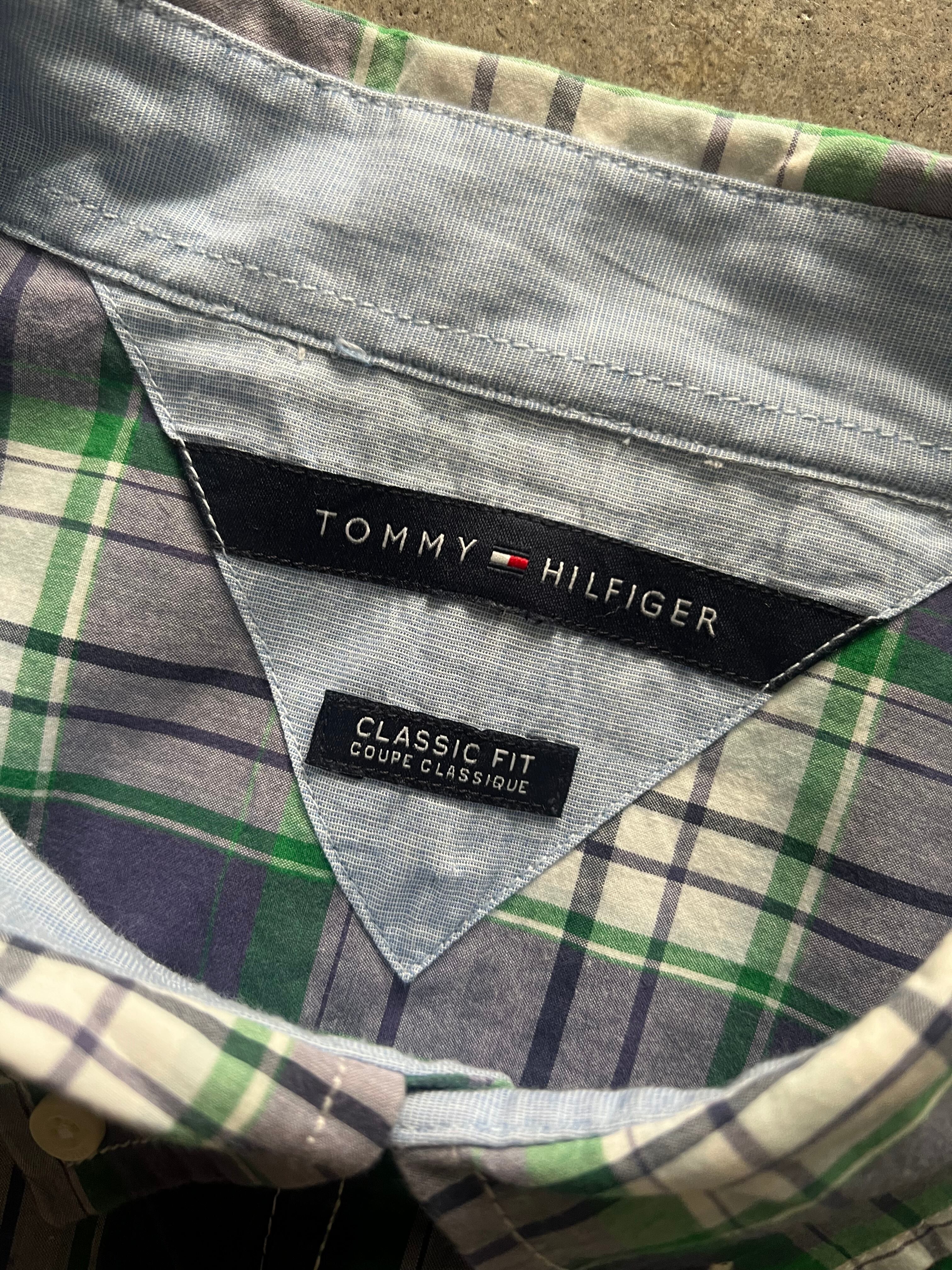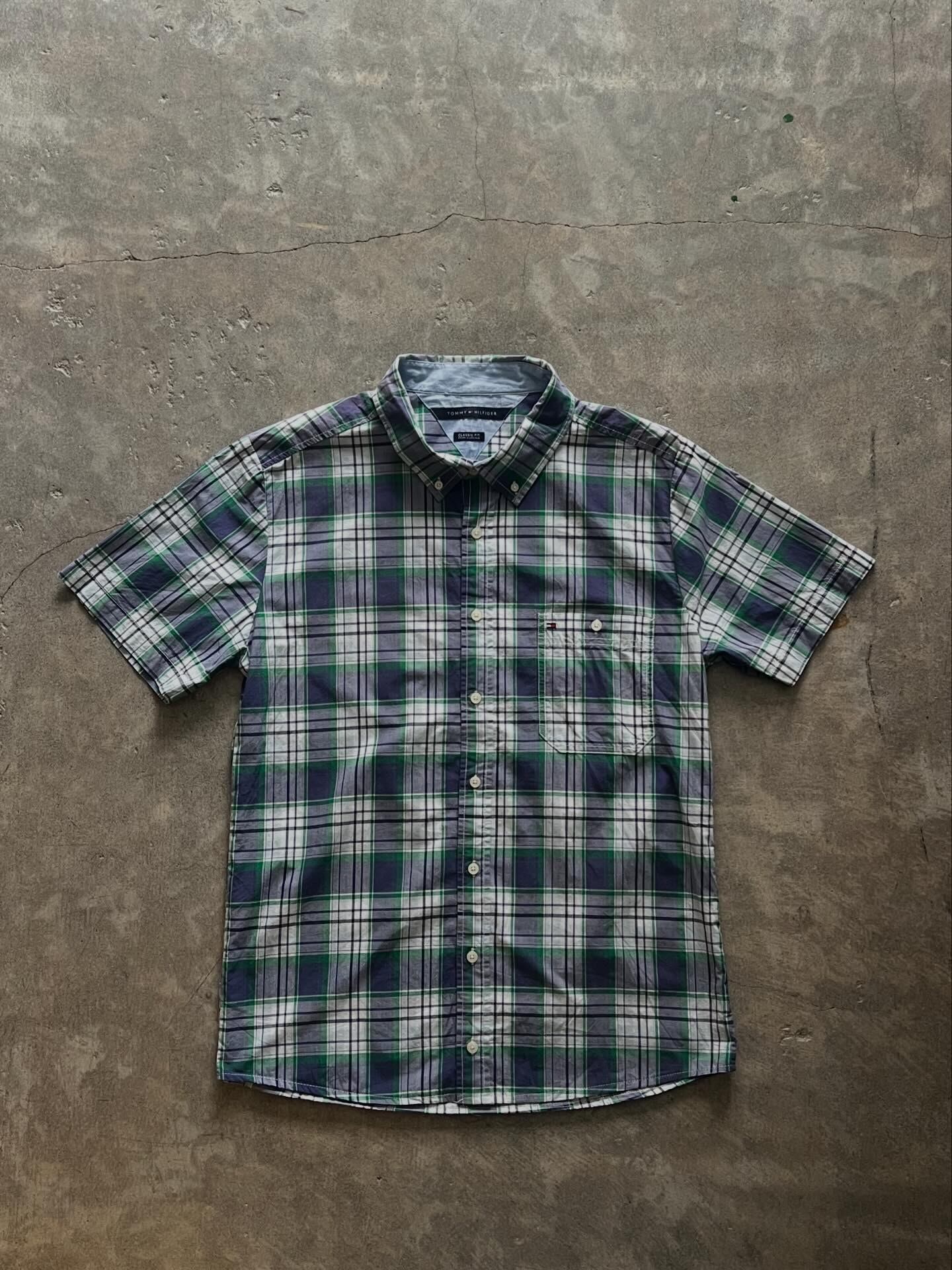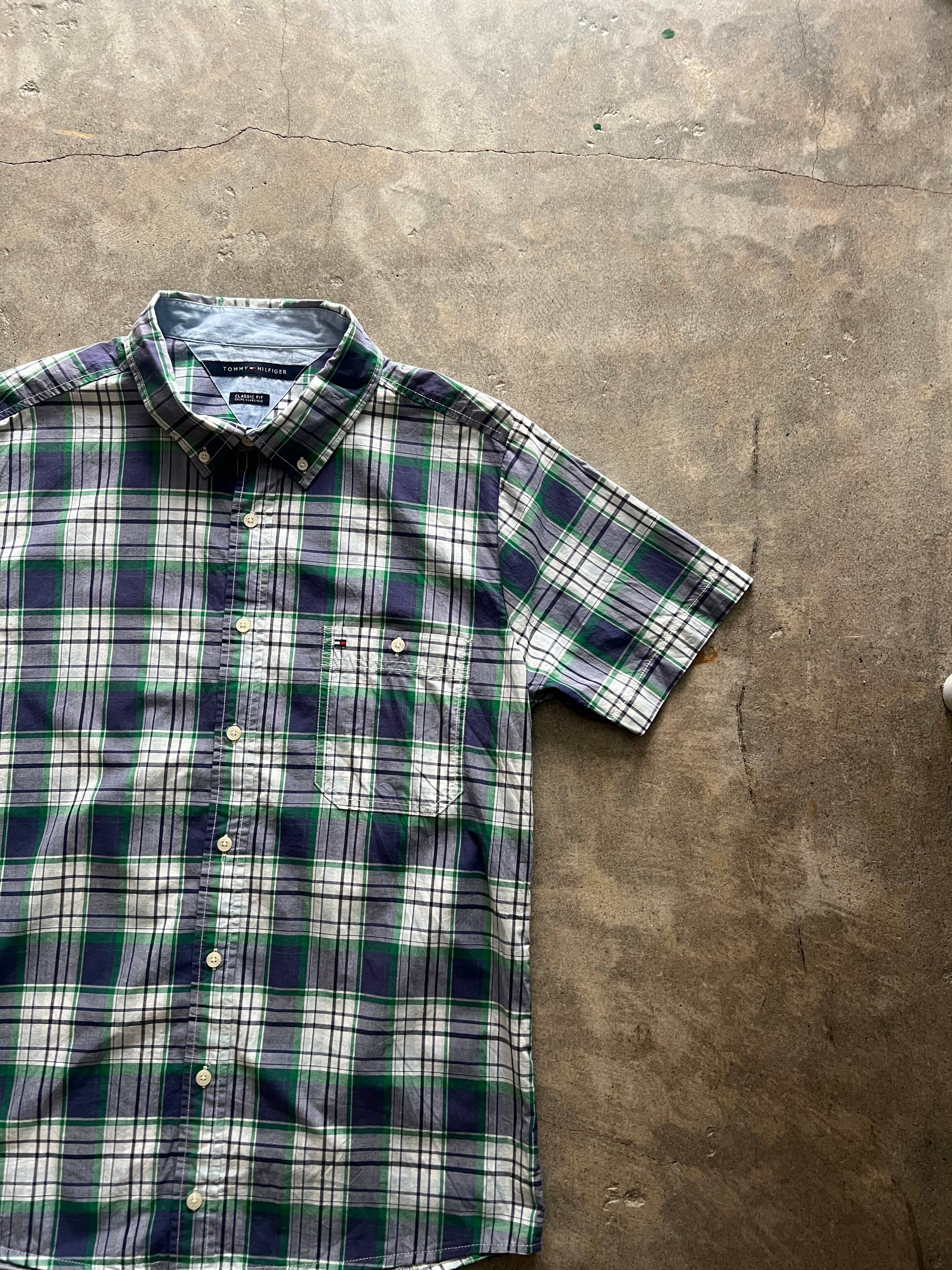 TOMMY HILFIGER トミーヒルフィガー 半袖シャツ チェックシャツ ボタンダウン グリーン カジュアル アメカジ 古着