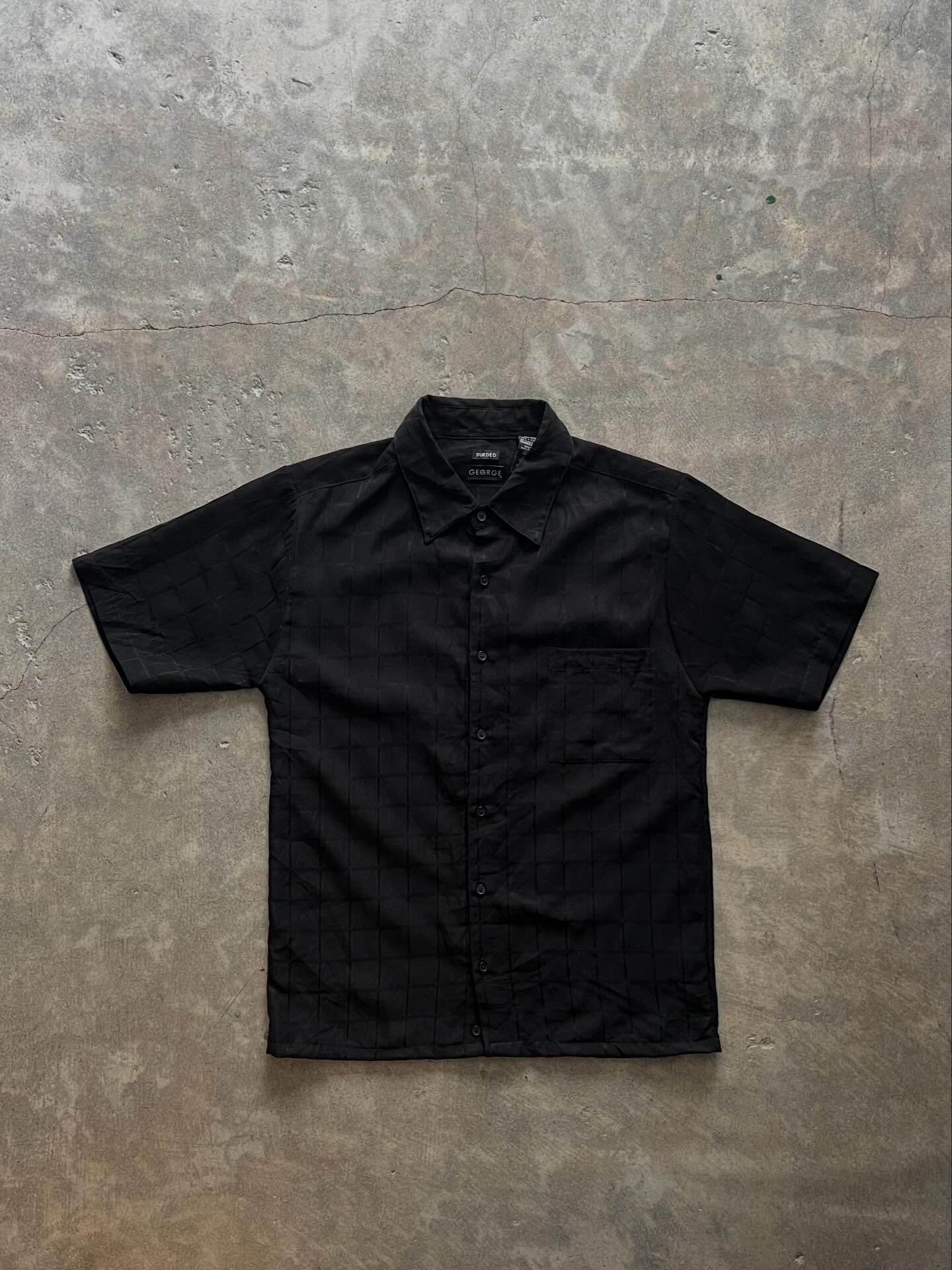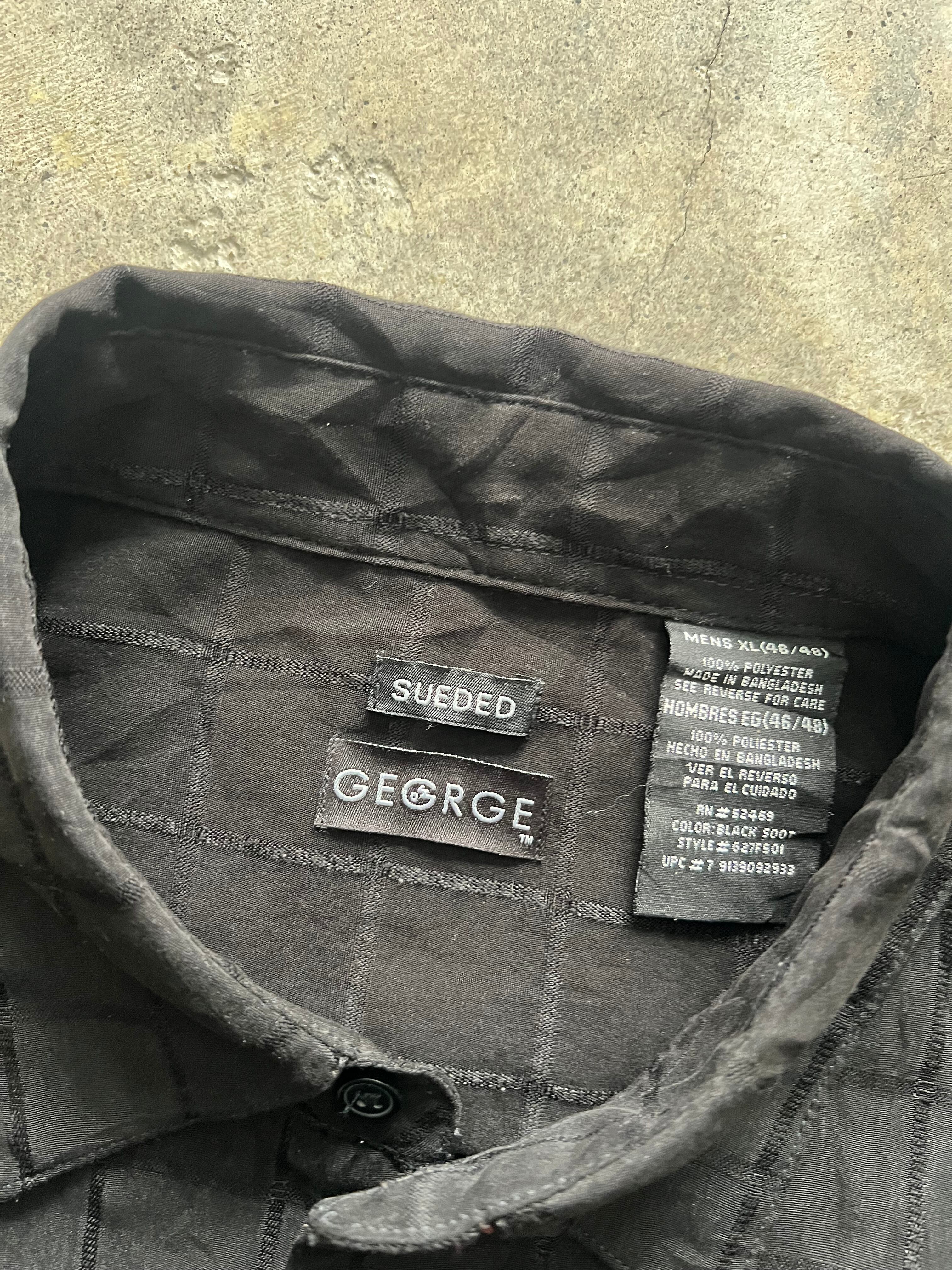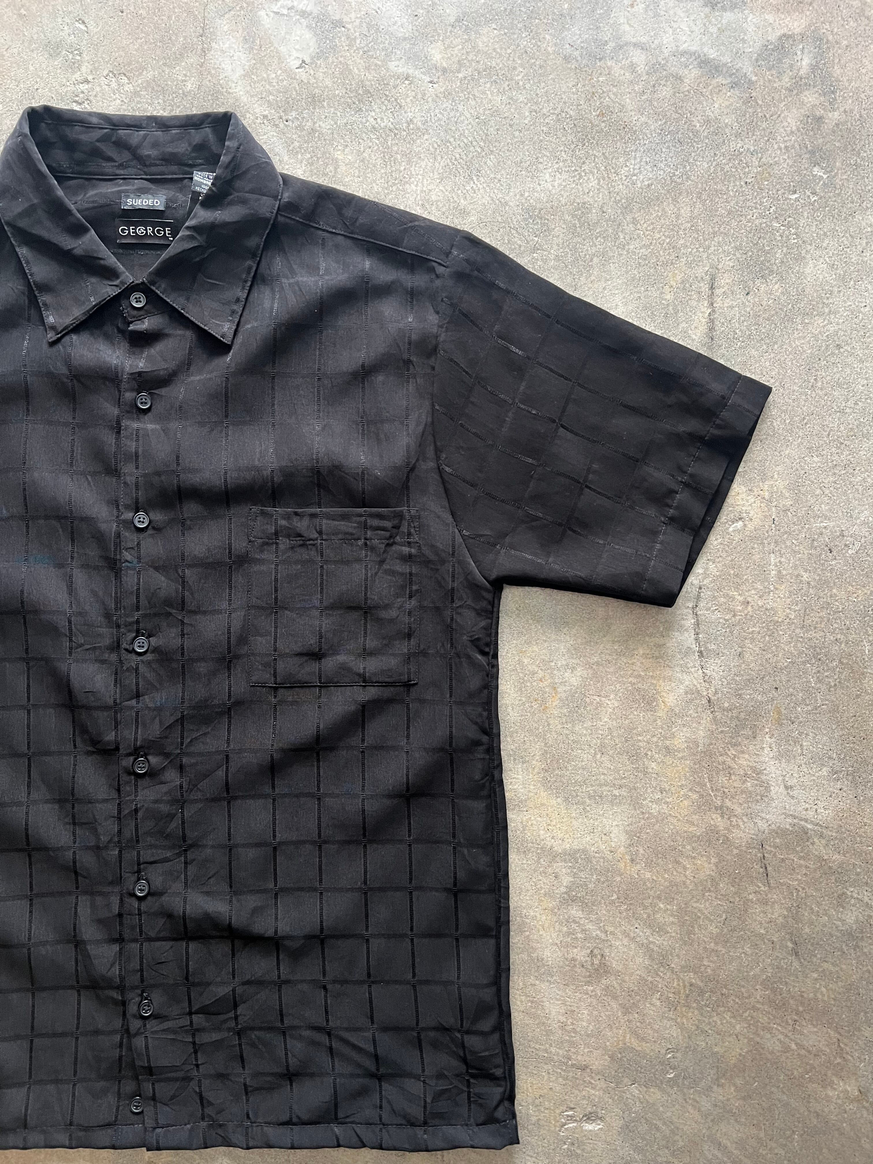 GEORGE ジョージ 半袖シャツ ブラックシャツ メンズ古着 XLサイズ 無地シャツ 格子柄 シンプル カジュアル キレイめ