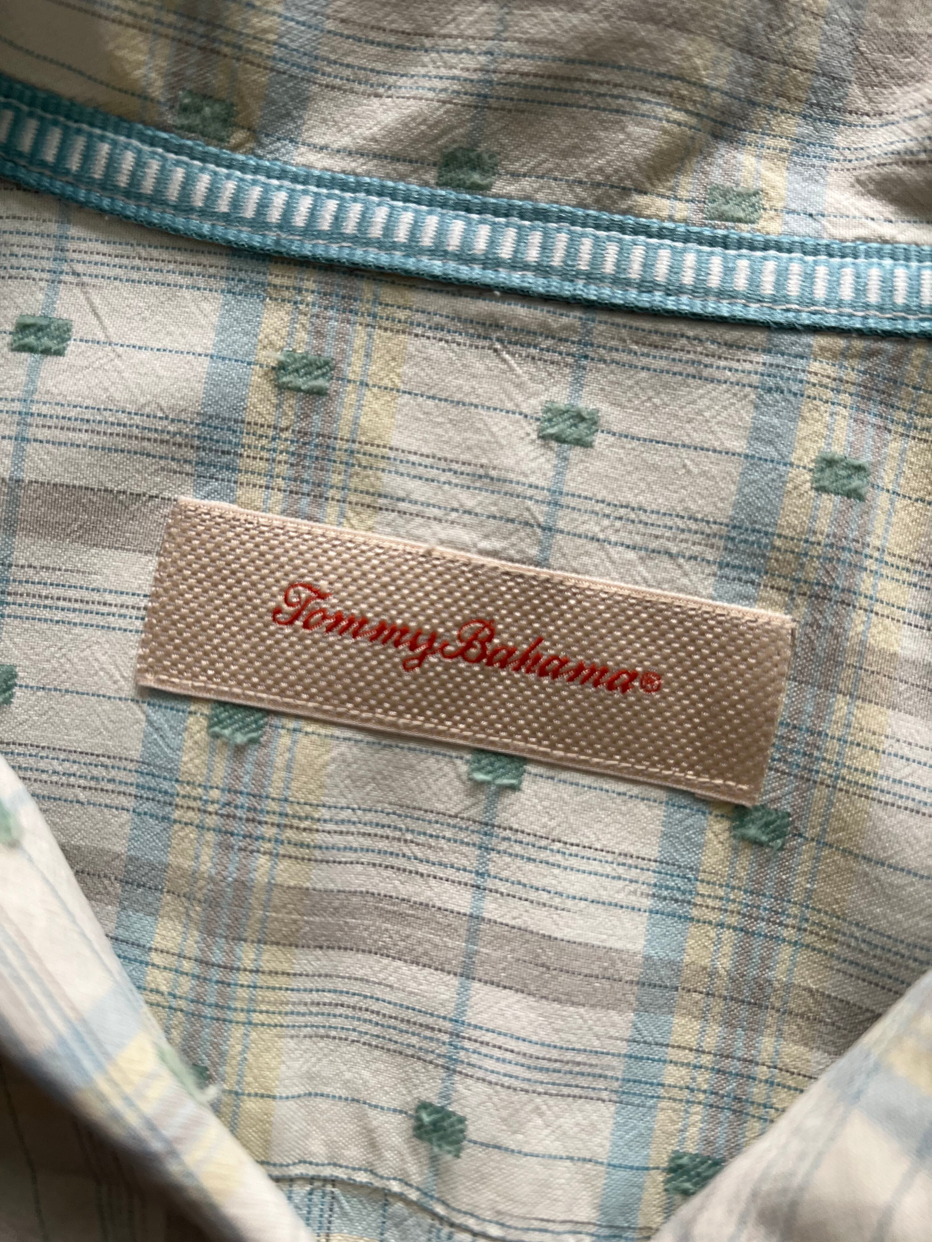 トミーバハマ TommyBahama 半袖シャツ シルクシャツ リゾートシャツ 開襟シャツ チェックシャツ 大きいサイズ ビッグサイズ 夏物 古着 メンズ
