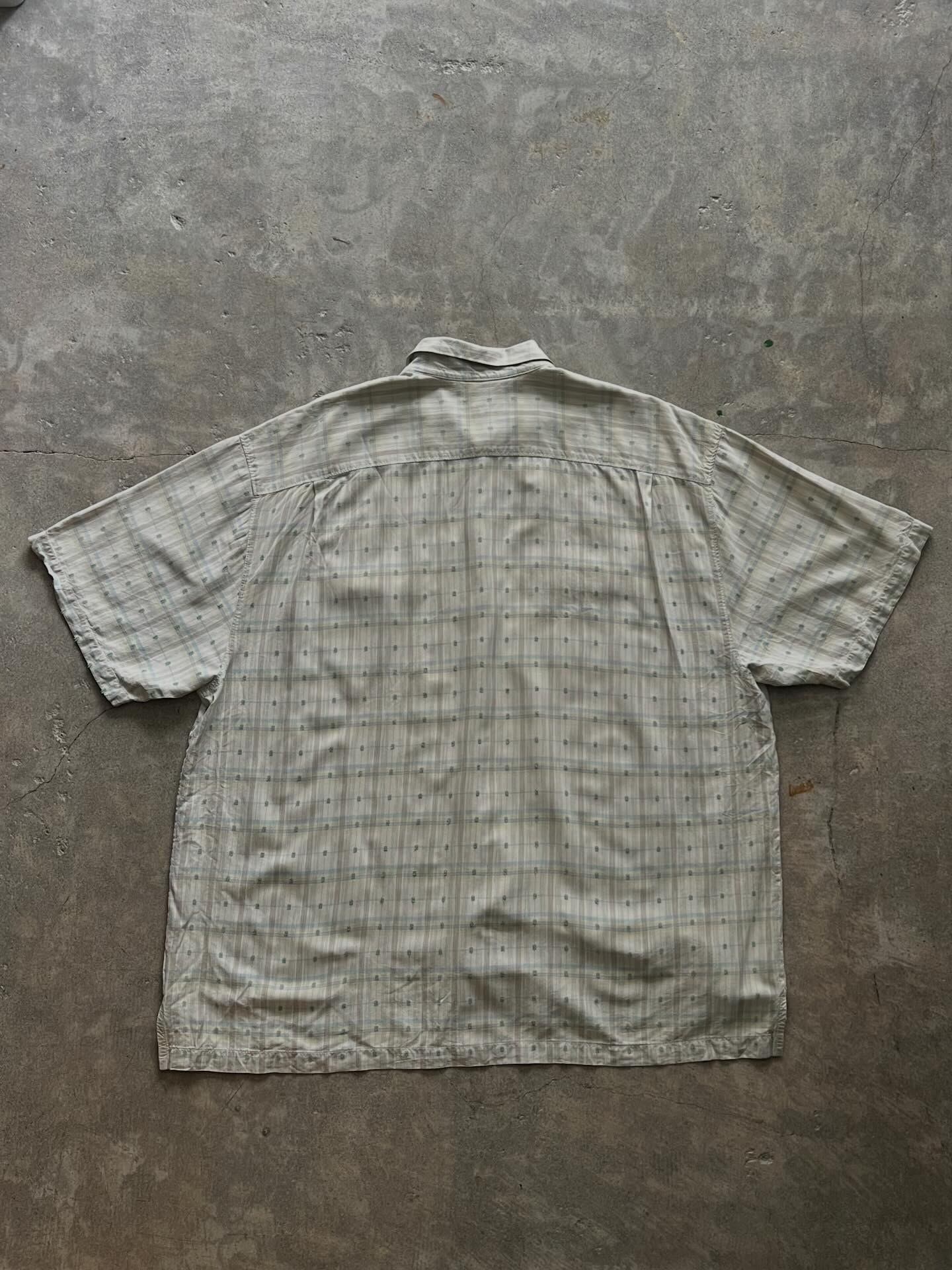 リラックス系 Tommy Bahama シルク混 半袖シャツ チェック ベージュ XXL