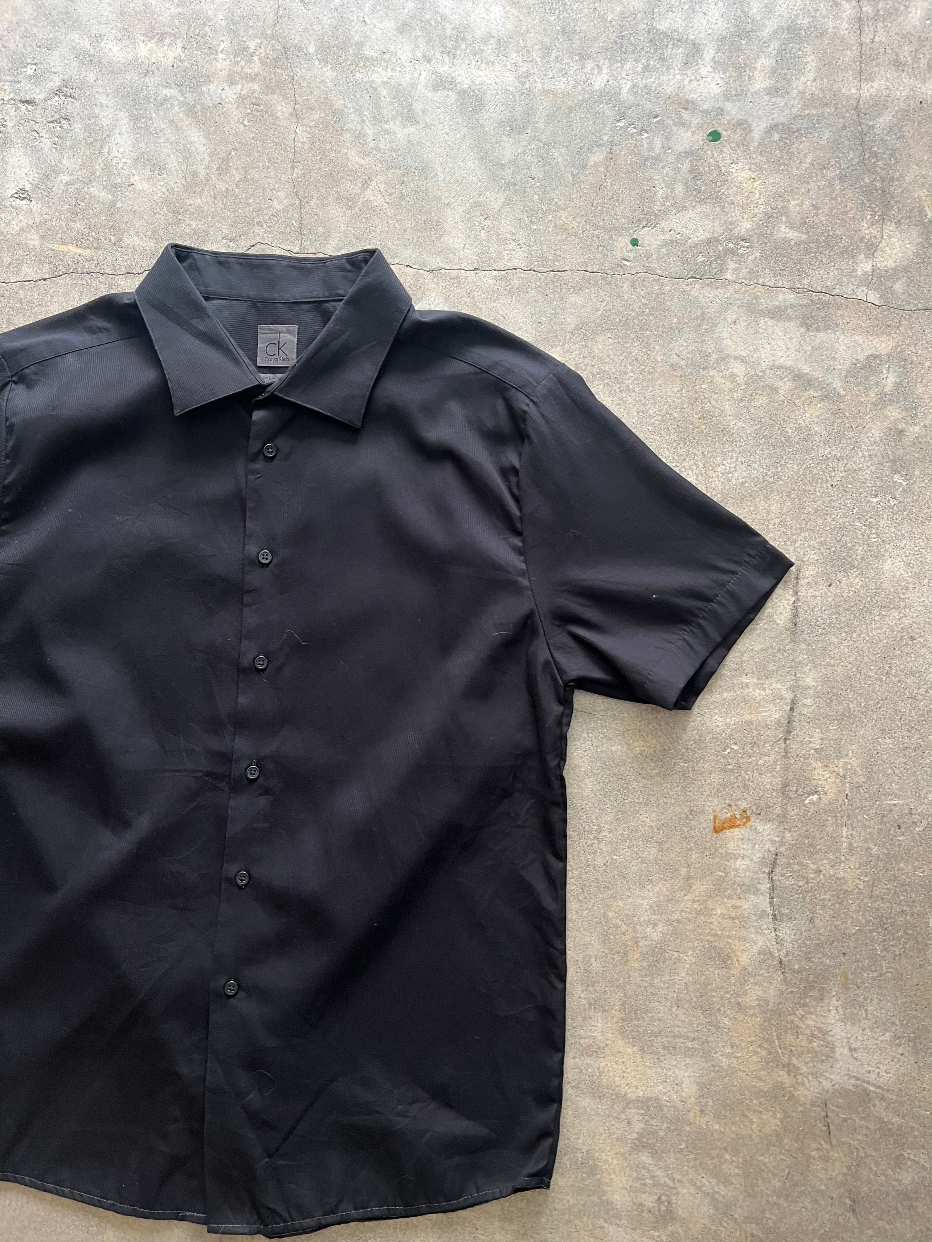 カルバンクライン CalvinKlein CK 半袖シャツ ブラックシャツ 無地シャツ モード系 シンプル メンズ 大きいサイズ 夏物 古着