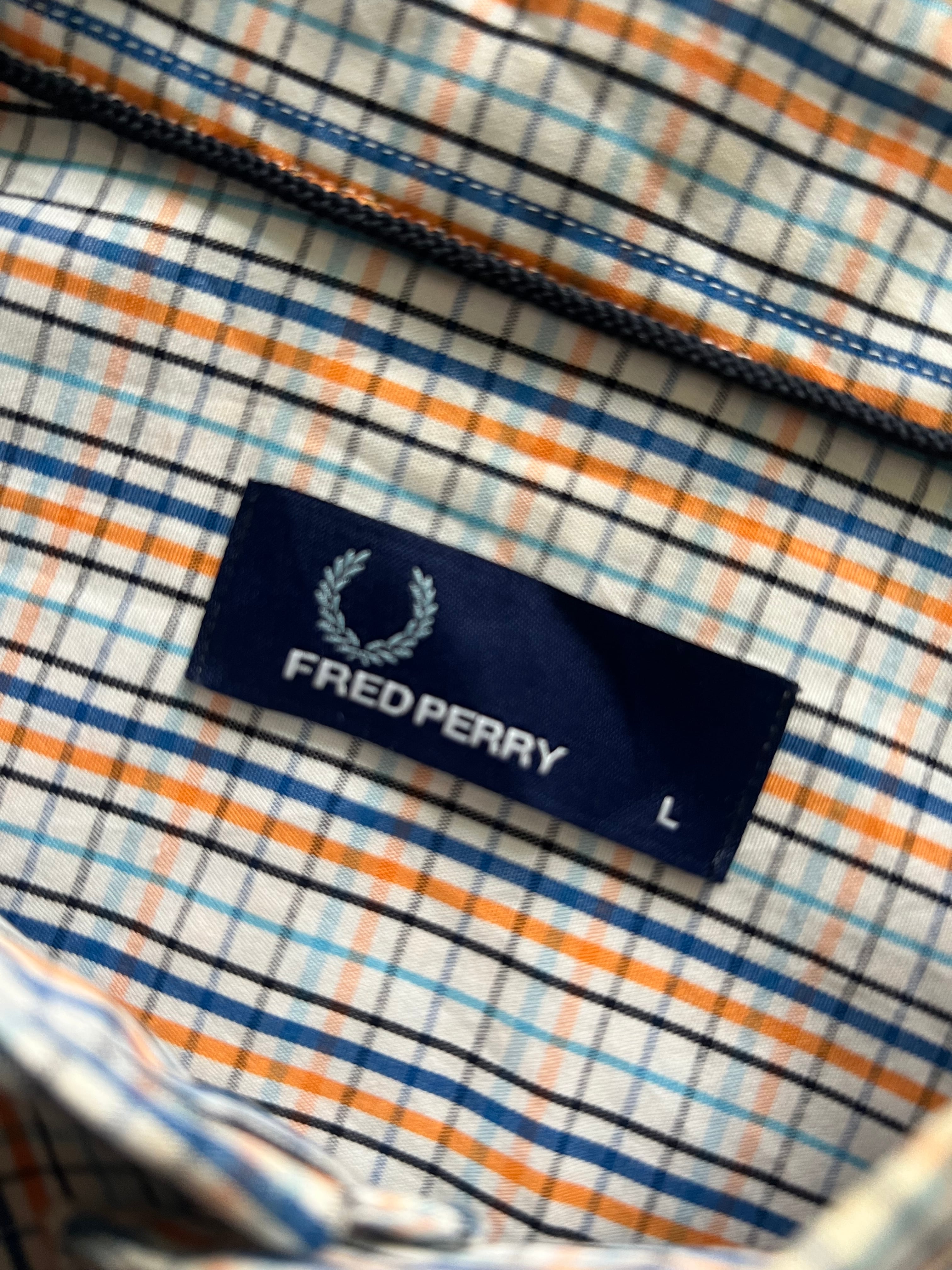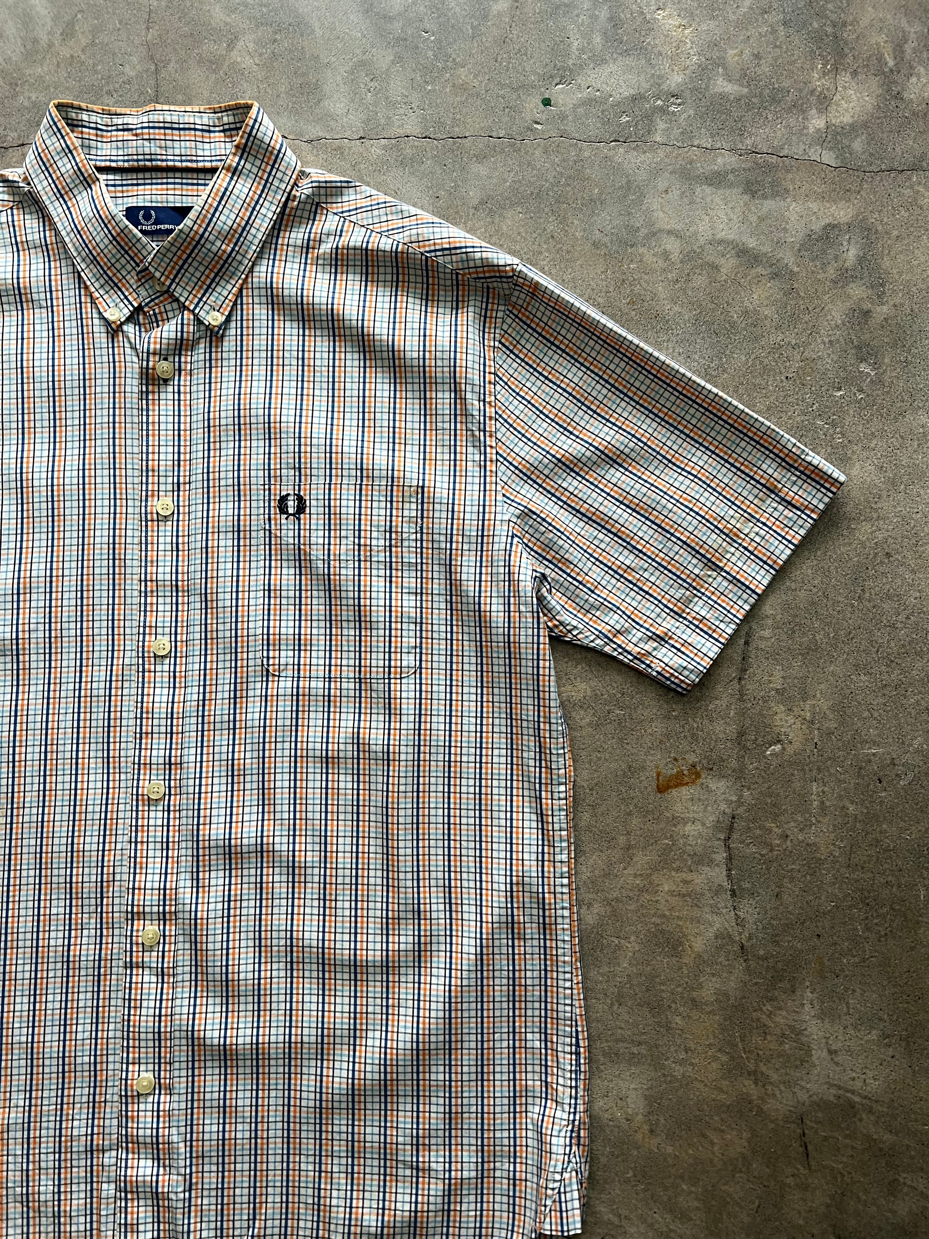 FRED PERRY 半袖チェックシャツ ボタンダウン ロゴ刺繍 L フレッドペリー