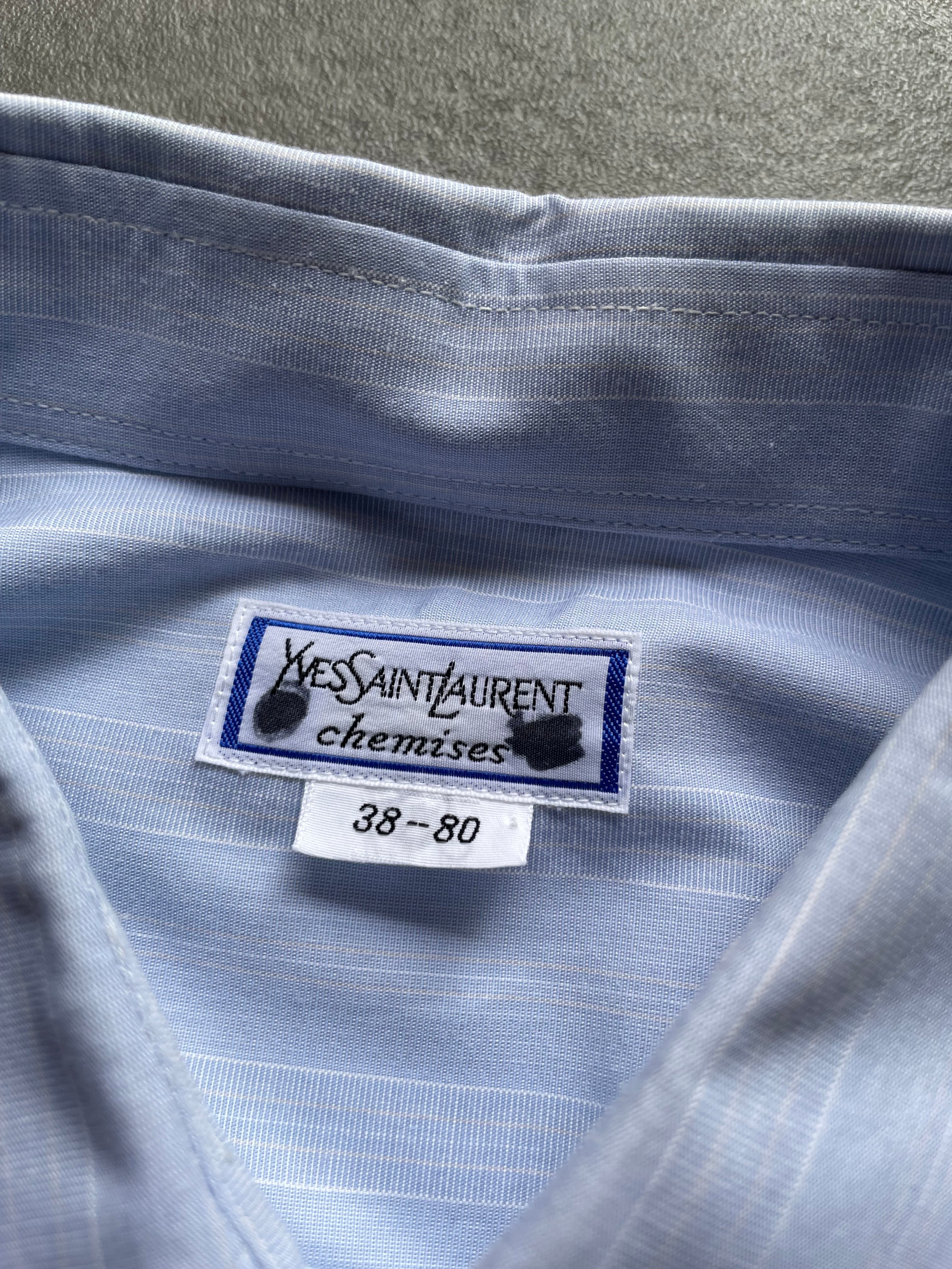 Yves Saint Laurentの上品な雰囲気が際立つ、ライトブルーのストライプシャツです。