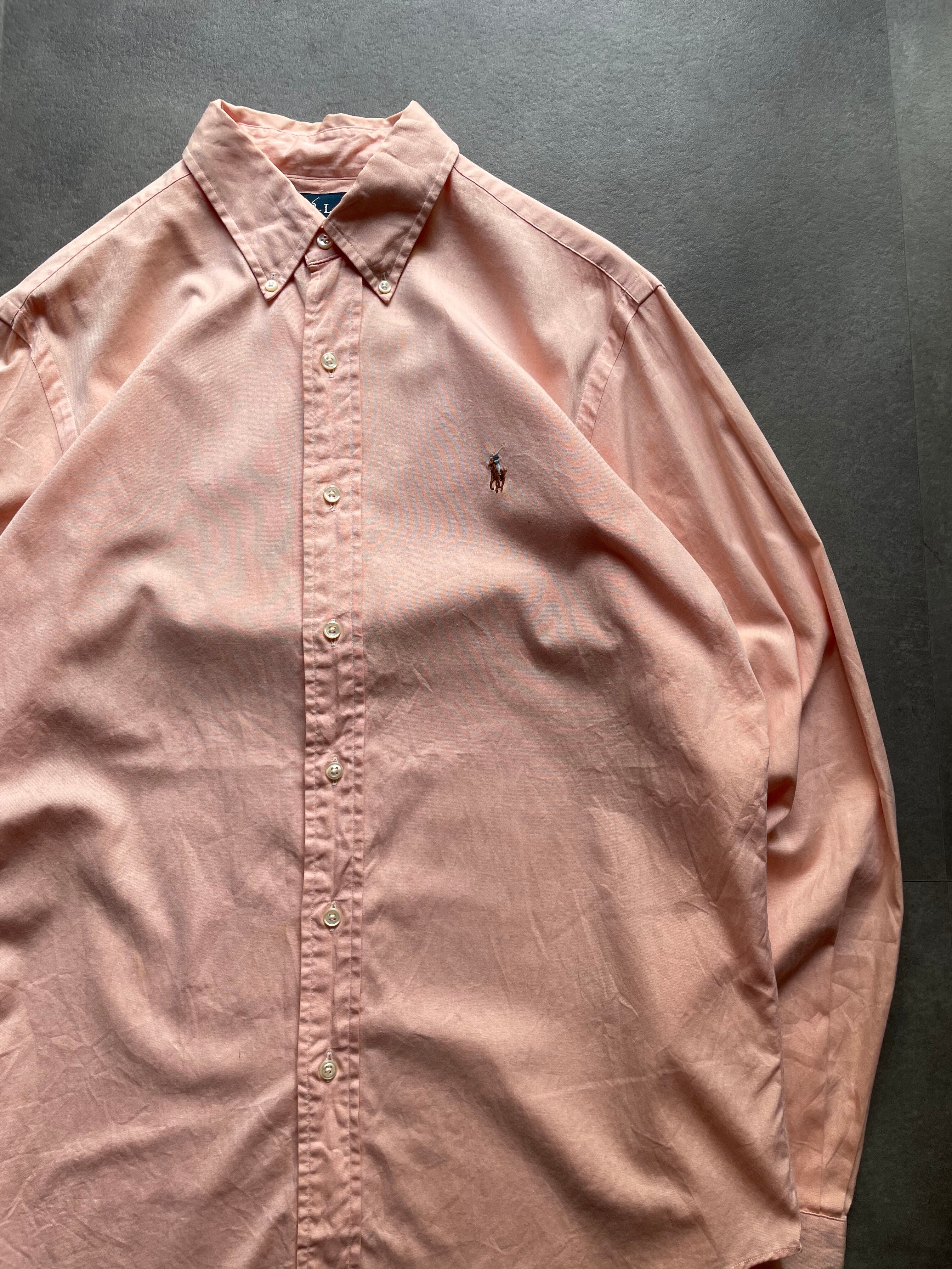 Ralph Lauren定番のボタンダウンシャツから、春夏らしいサーモンピンクカラーの一着です。