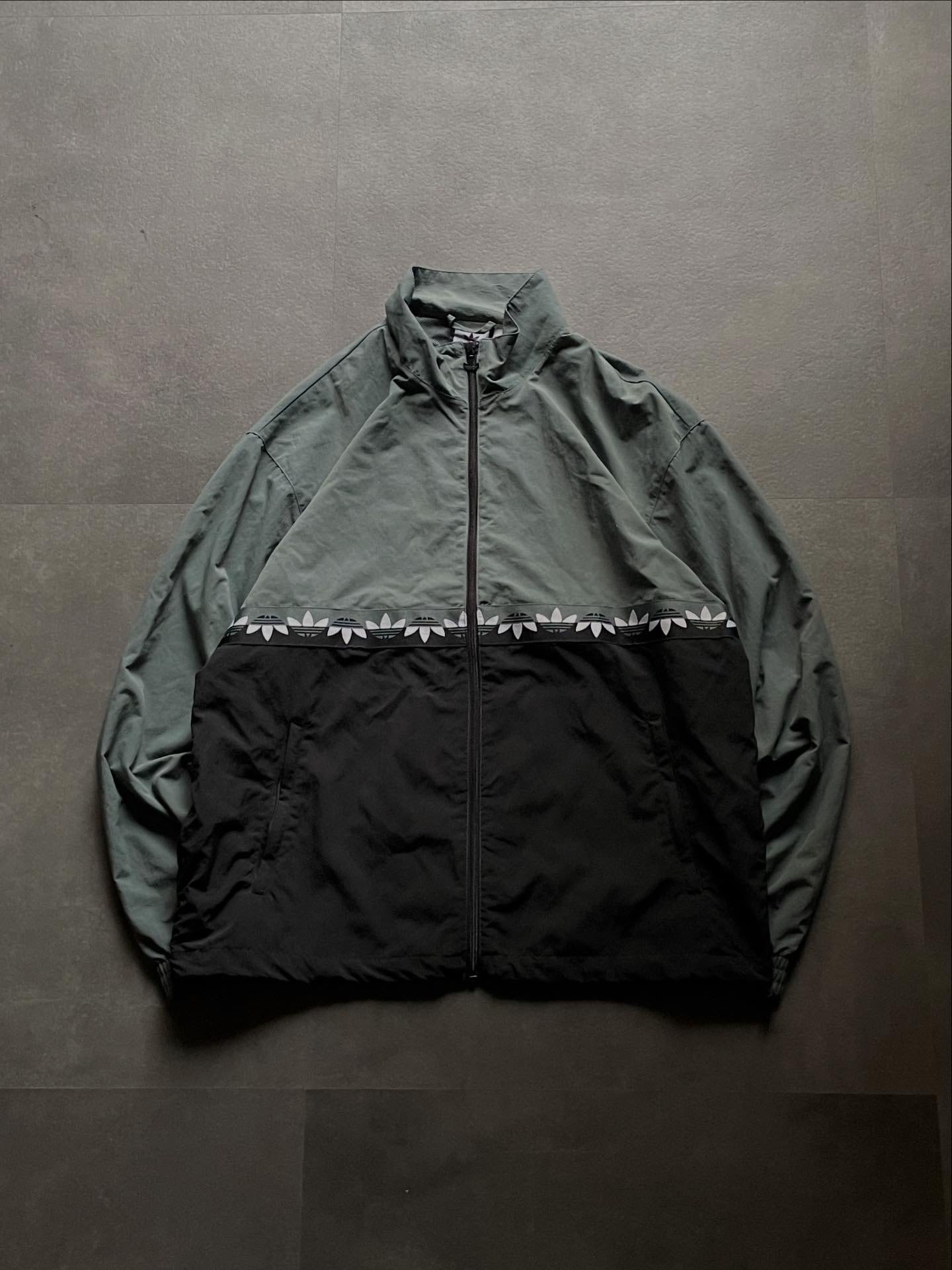 adidas トラックジャケット 4XL グレー ブラック 切替 トレフォイル ナイロン