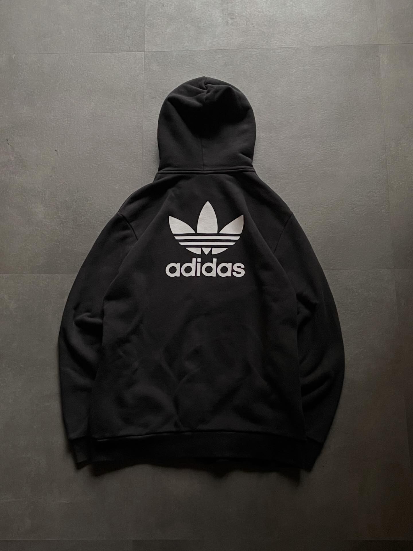 adidas ジップパーカー ブラック 2XL トレフォイル ビッグロゴ フーディ