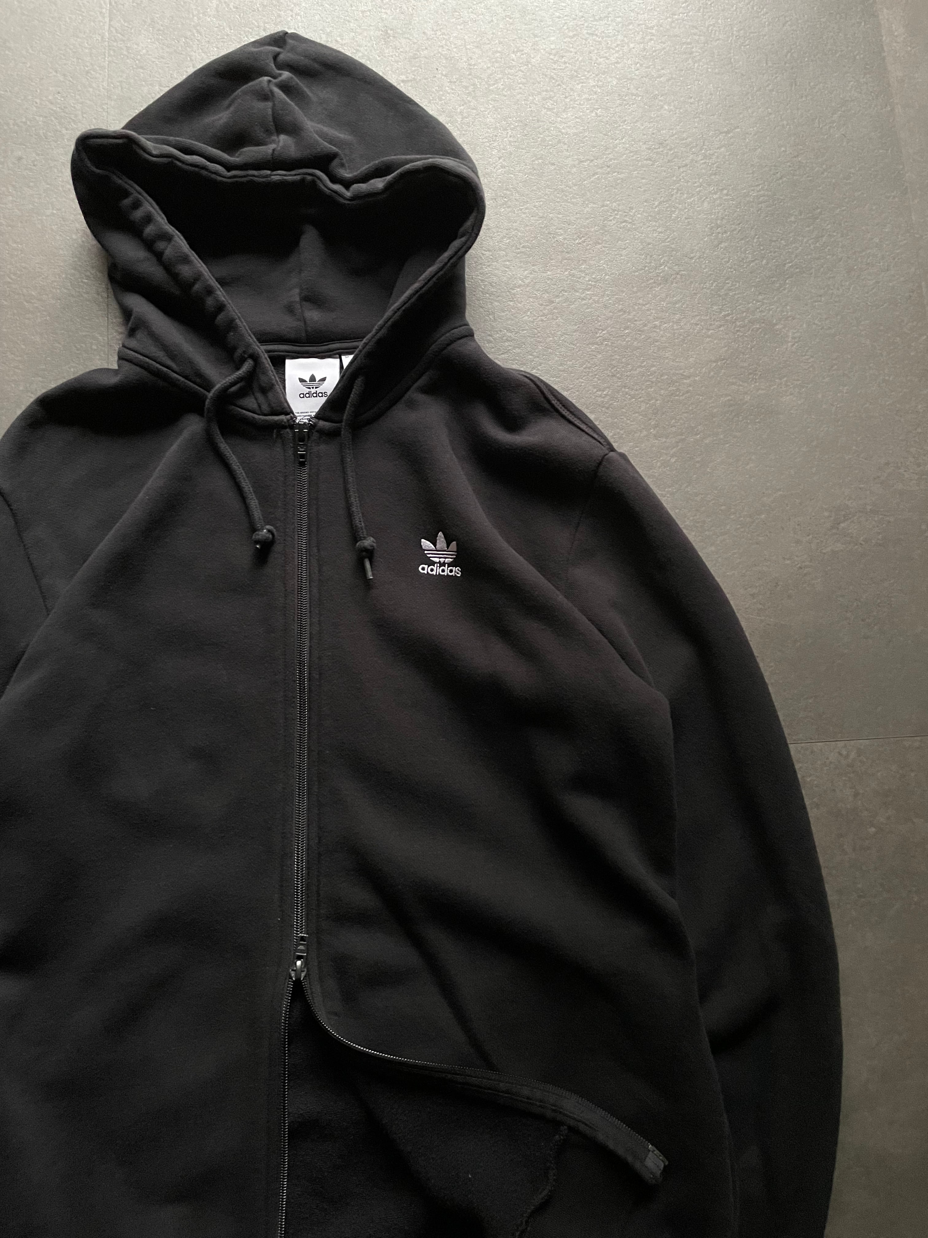 ブラックボディにトレフォイルロゴが映える、存在感のあるジップパーカー。